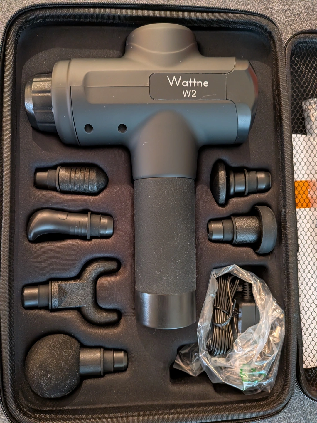 Selling a Wattne W2 massage gun in great condition! It comes with all the attachments shown in the pictures, as well as the charger and carrying case.