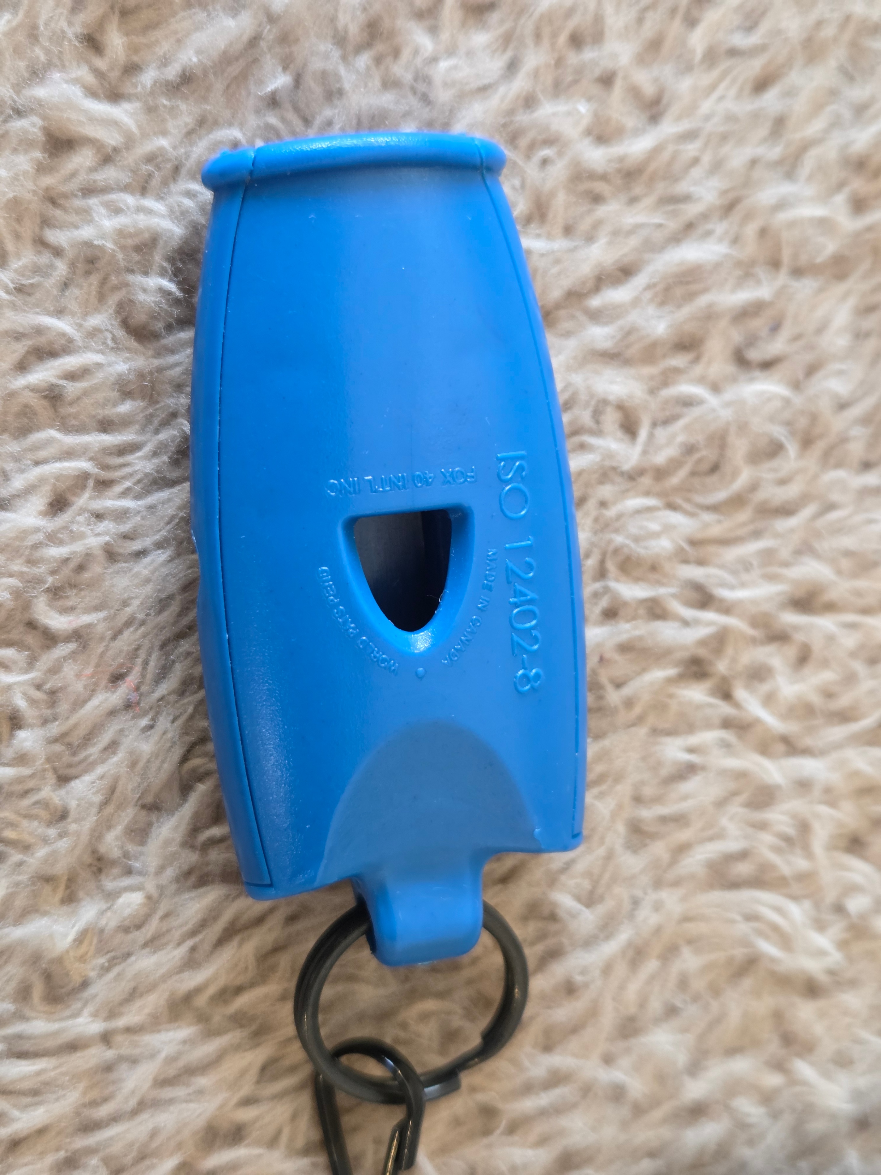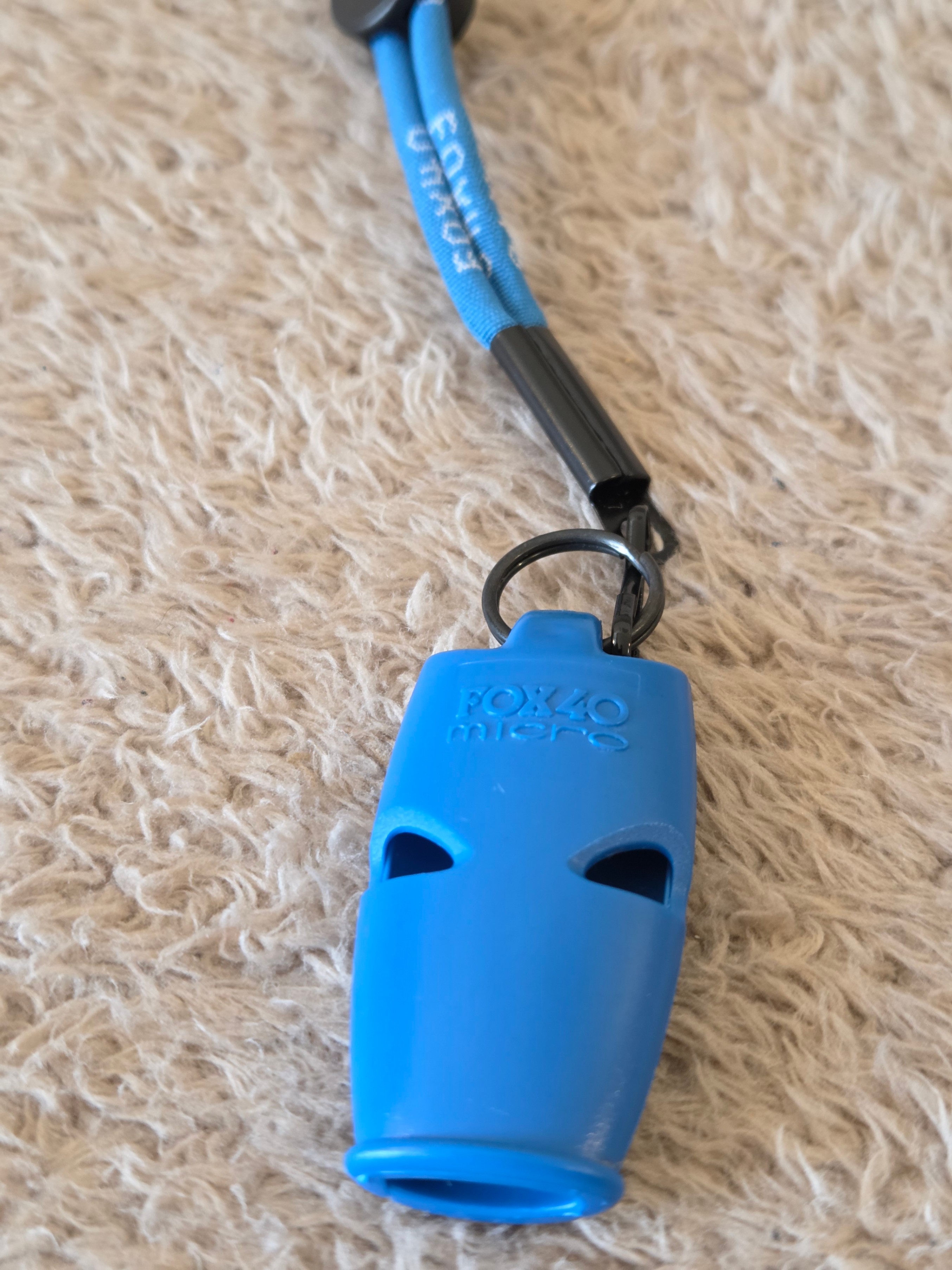 – Key specs: Fox 40 Micro pealess whistle, est. ~110 dB; color – blue; adjustable nylon lanyard with cord lock; key ring included
