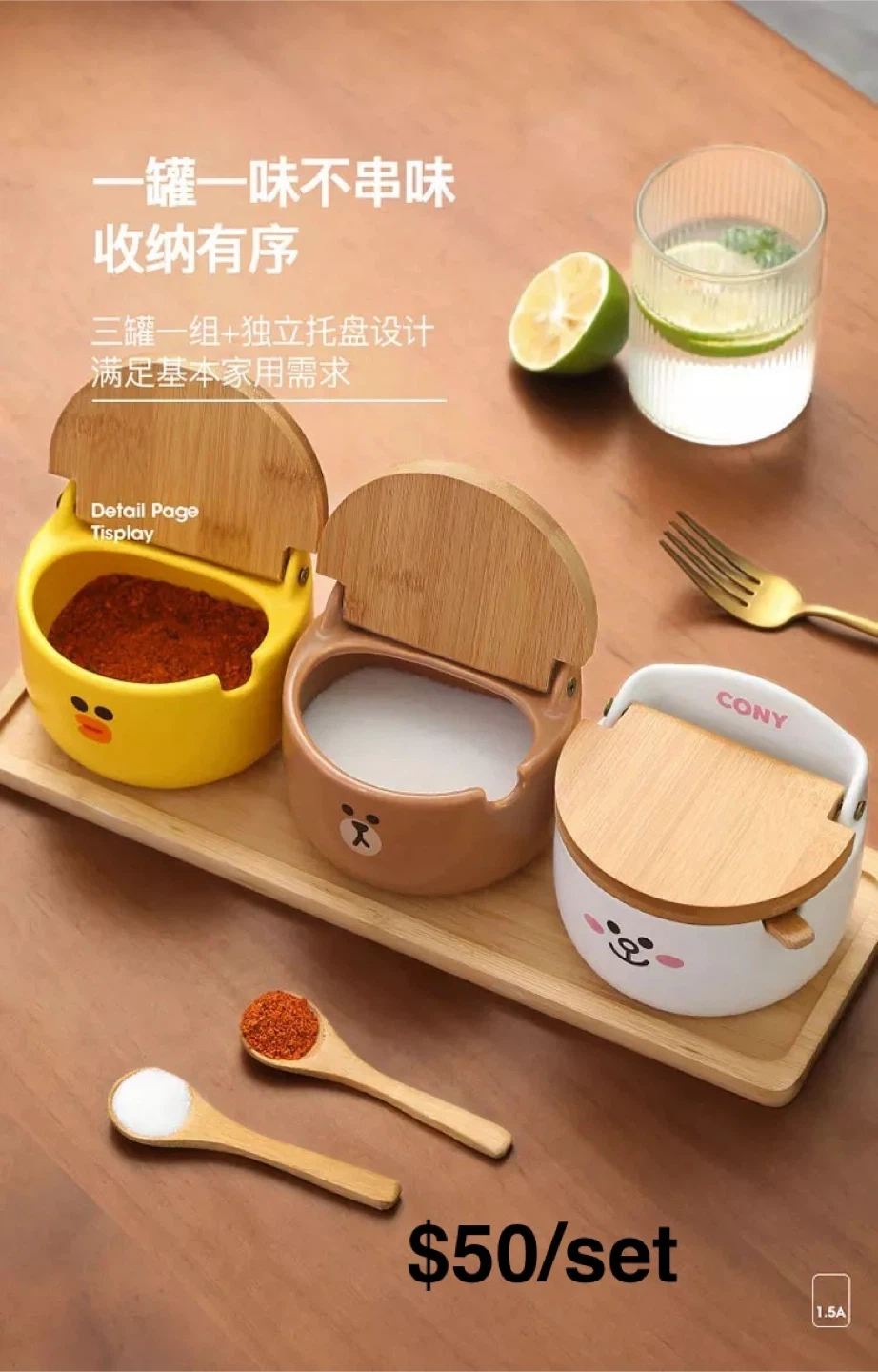 Here's a cute Line Friends Cony ceramic seasoning jar! It's about 90mm in size and would be perfect for adding a touch of fun to your kitchen. This jar is great for storing your favourite spices or condiments