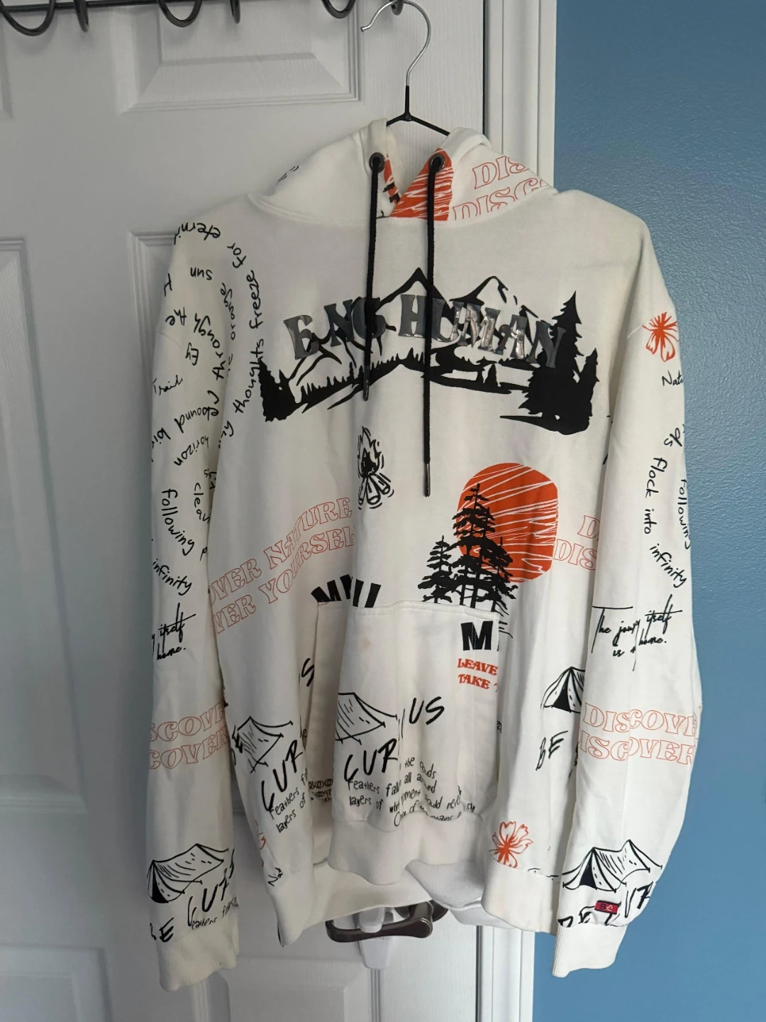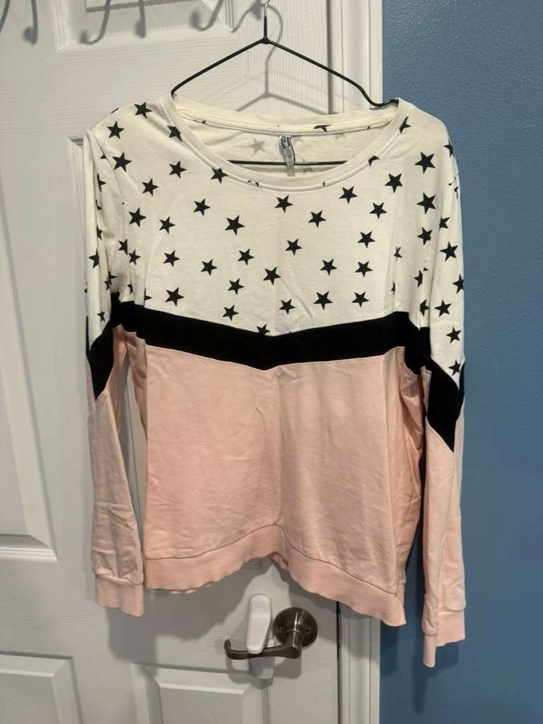 Selling a variety of women's tops and sweaters. Includes a star-patterned long sleeve, a graphic hoodie, a plain white t-shirt, and a black turtleneck sweater. All in good condition and ready for a new home!pick any for 5 to 8dollars
