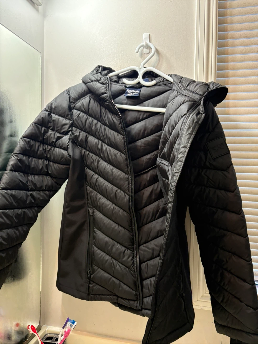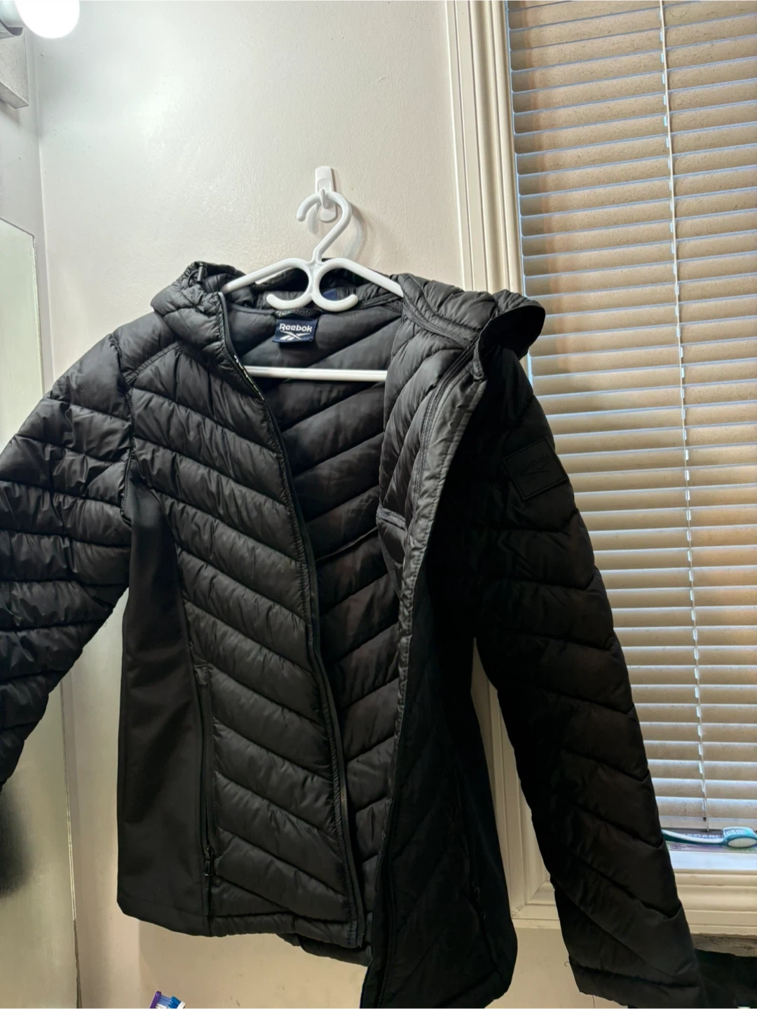 Selling a Reebok puffer jacket in black! It's in great condition and ready to keep you warm. Perfect for those chilly days!