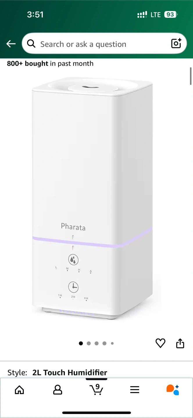 β’ Ultrasonic humidifier β low power consumption (electricity cost is minimal)