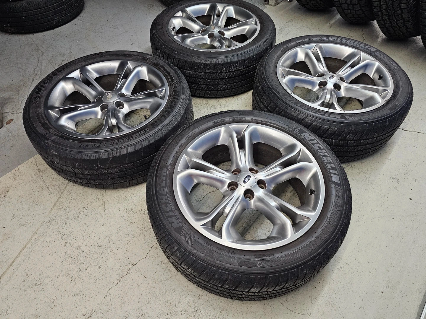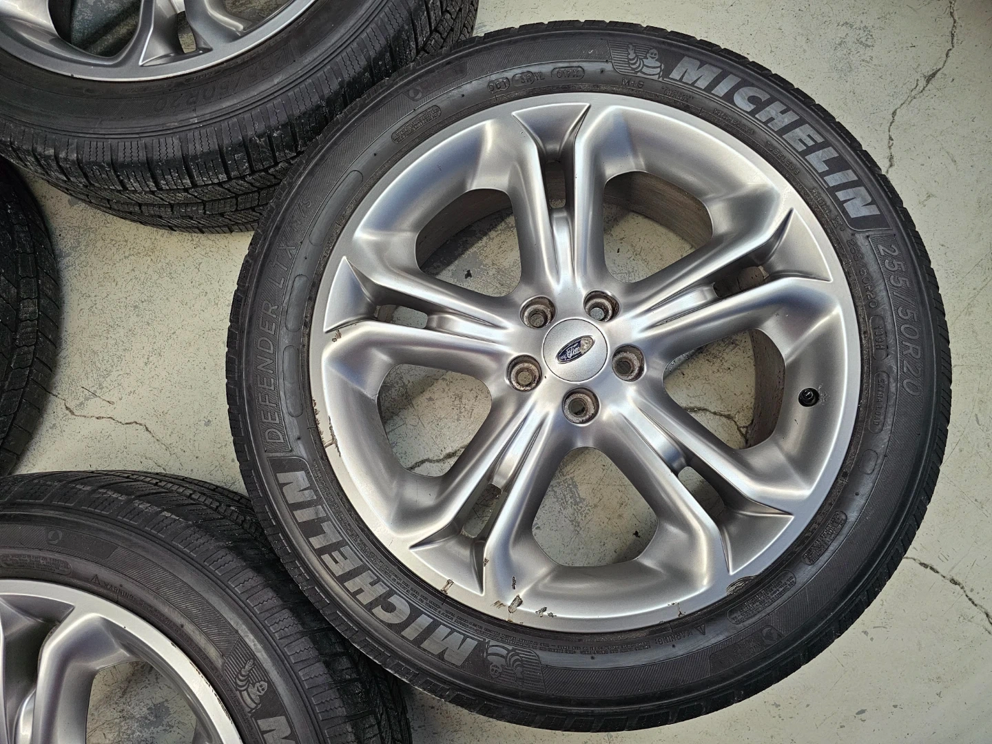 Set of 4 original 20" ford explorer rims and Michellin defender all season tires 255/50 R20. Rims are in good shape, no bend, no cracks, minor curb rash. 2 tires are good, 2 are not. TPMS INSTALLED