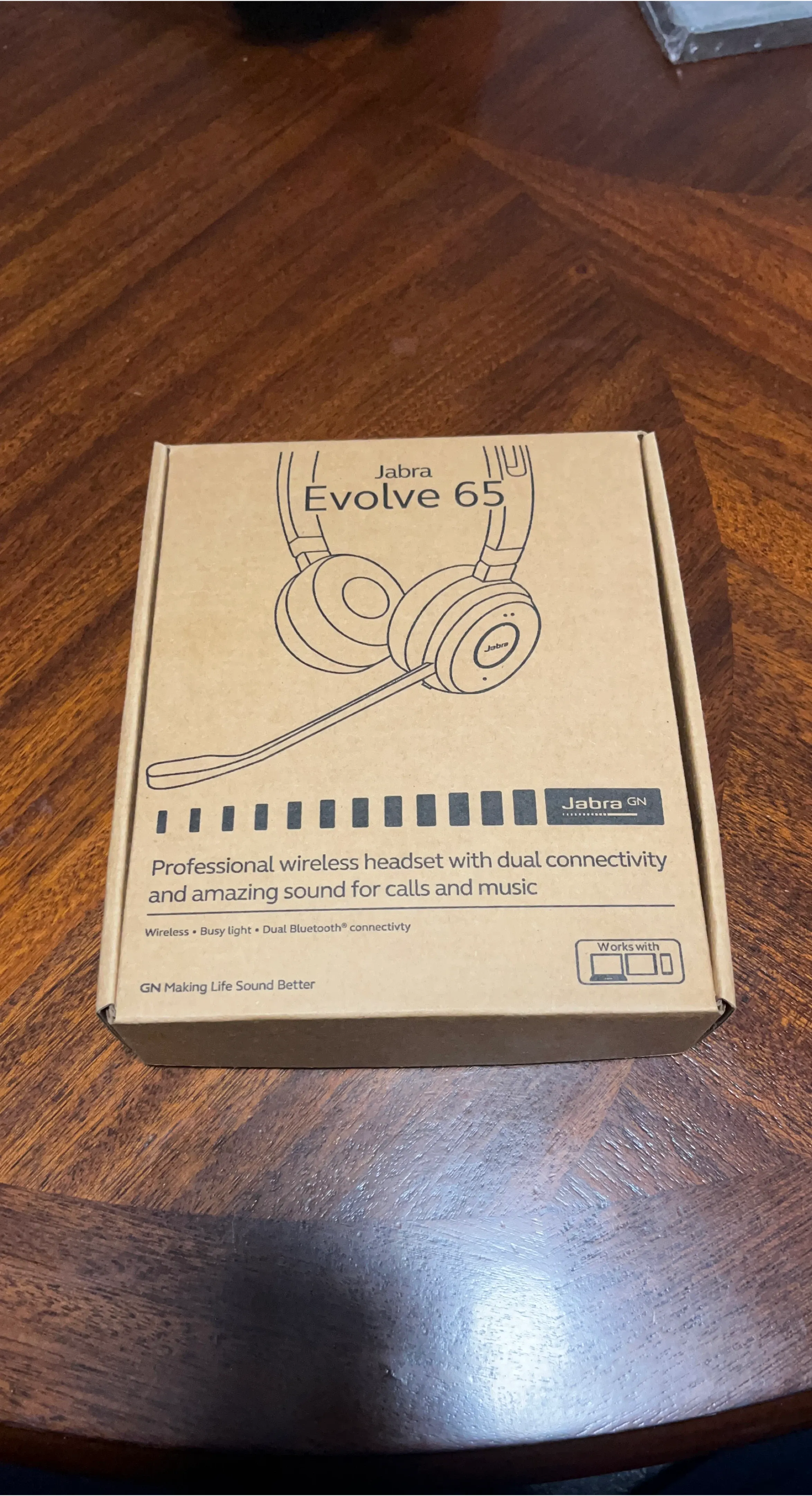 Selling a Jabra Evolve 65 professional wireless headset! It offers dual connectivity and amazing sound for calls and music. It's wireless and has a busy light, plus Dual Bluetooth connectivity! The box is included.