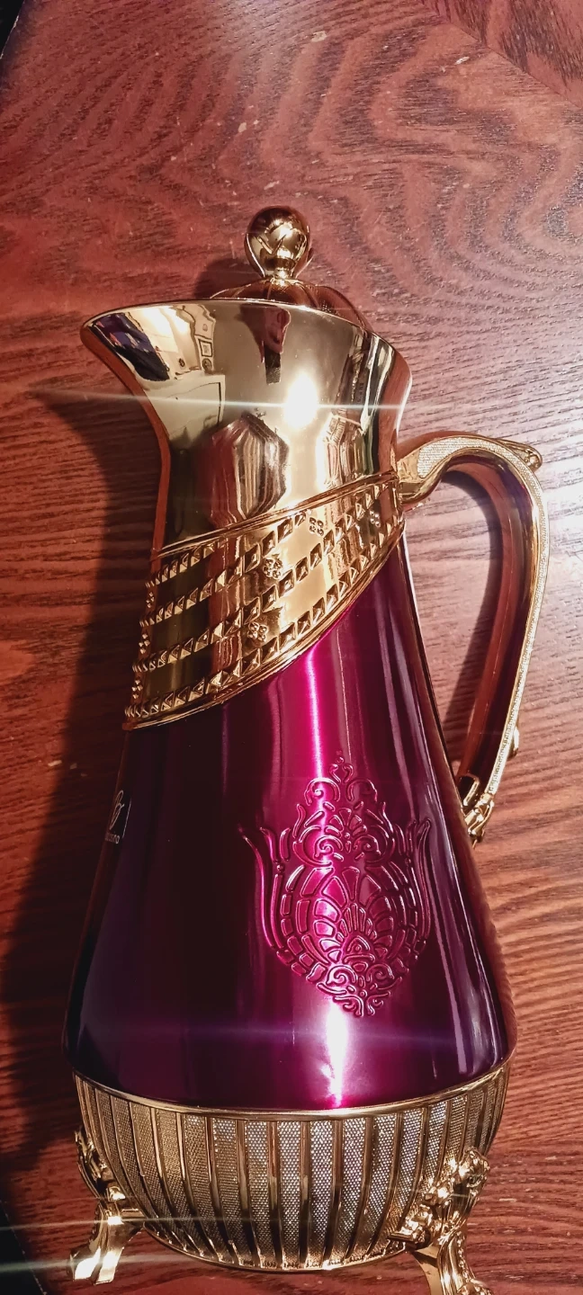 New !!! Beautiful Elegant Gold & Red Coffee Thermos, Thermal Coffee or Tea Carafe,Pitcher with a Lid. This beautiful pitcher is gold and burgundy color! It can be used for Coffee or tea IF YOU WANT TO KEEP YOUR COFFEE OR TEA HOT FOR A LONGER TIME. It would also look great as a decorative centerpiece or accent piece in your home, as well. New !! 14"×7". ALL MY PRICES ARE NEGOTIABLE !! NEW !! NEVER BEEN USED !!
