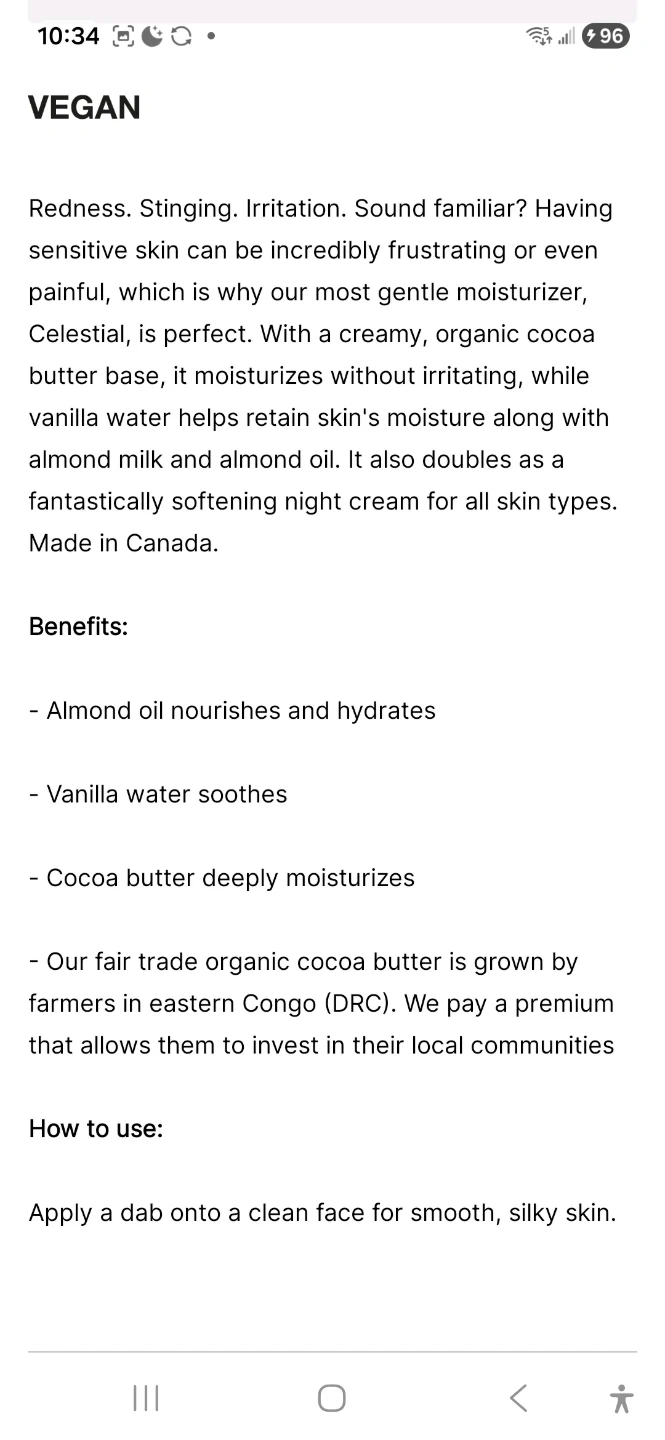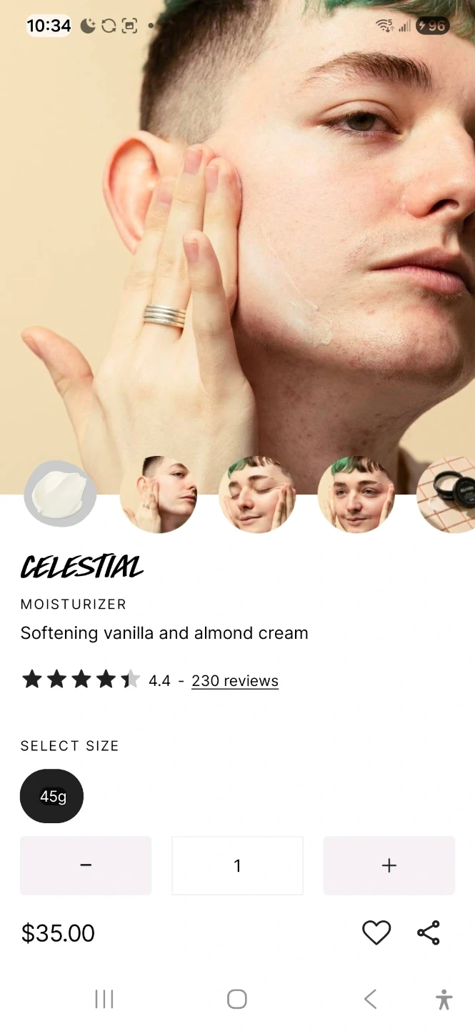 Selling a Lush Celestial Moisturizer.