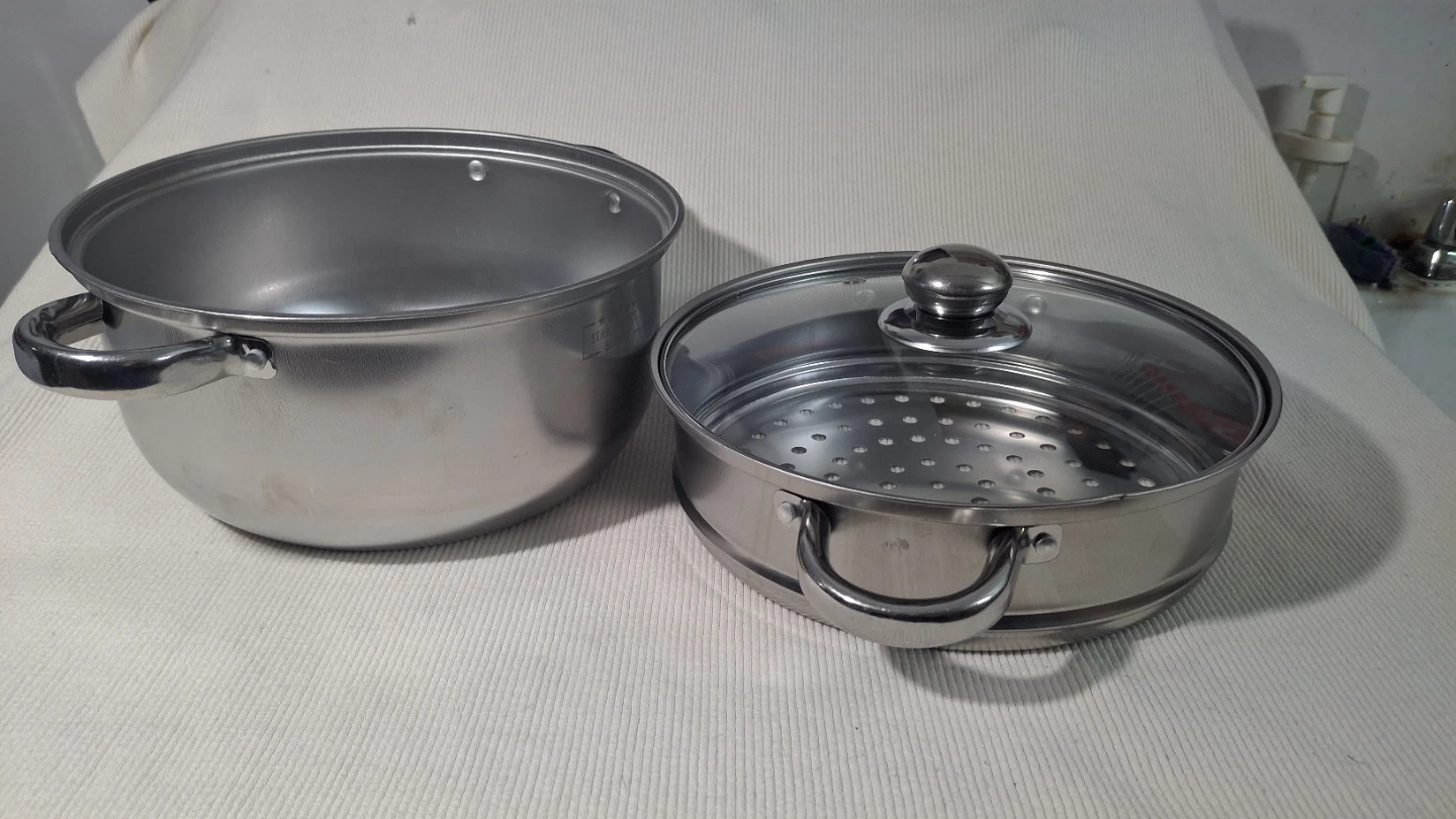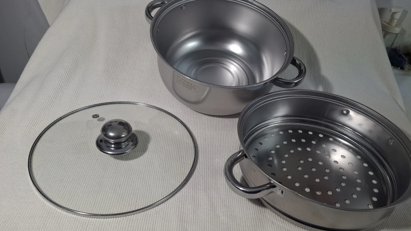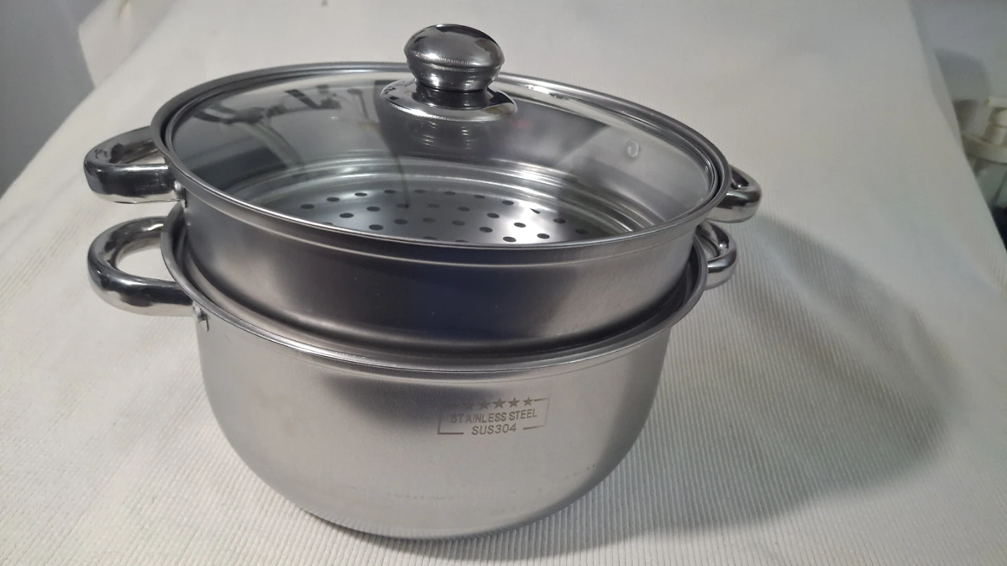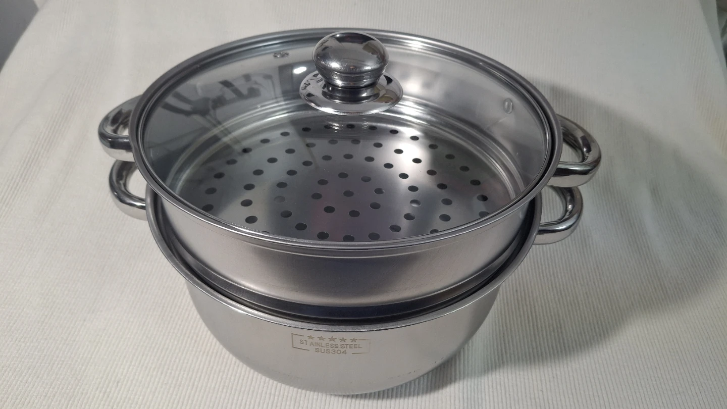 9" two tier Stainless Steel Steamer Pot with glass lid