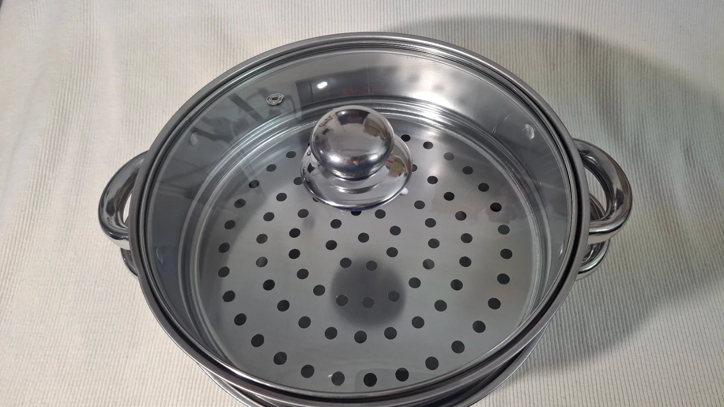 9" two tier stainless steel steamer with glass lid