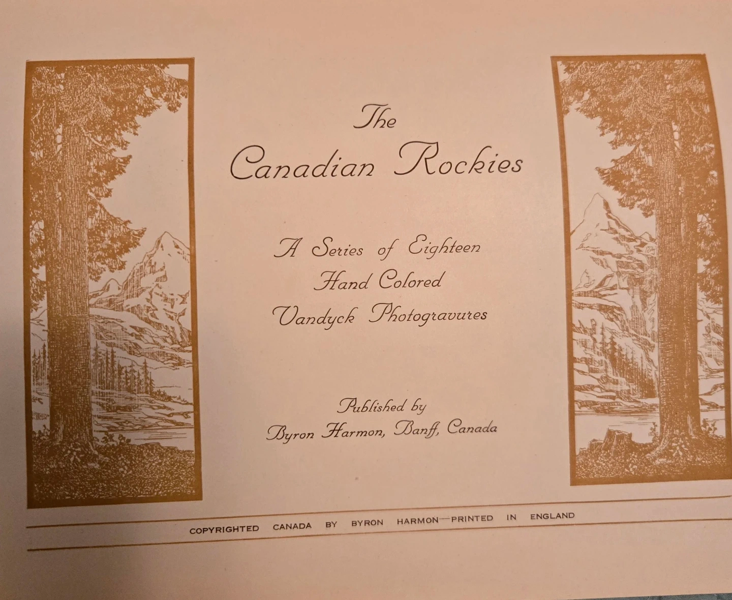 1950s Prints Book, The CANADIAN ROCKIES Banff Colored Photos by Byron Harmon, Hand Colored Vandyck Photogravures