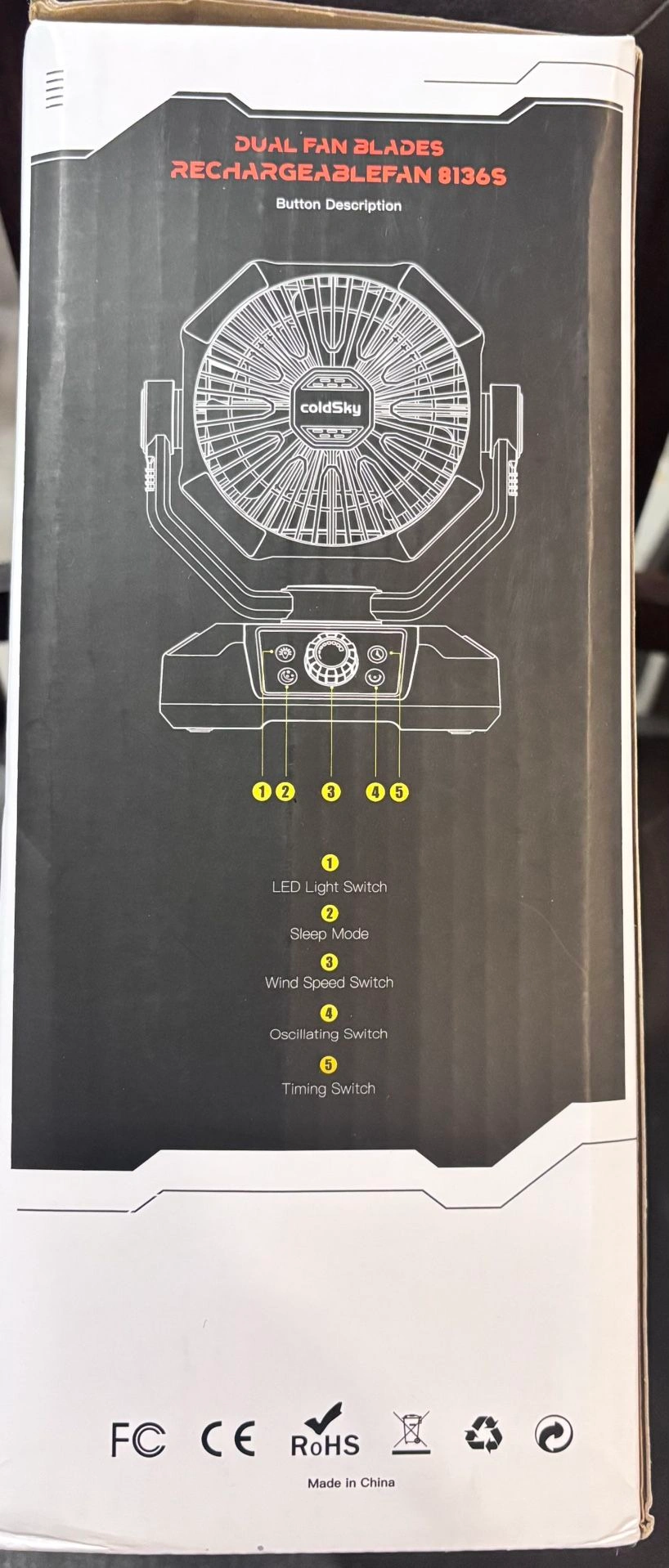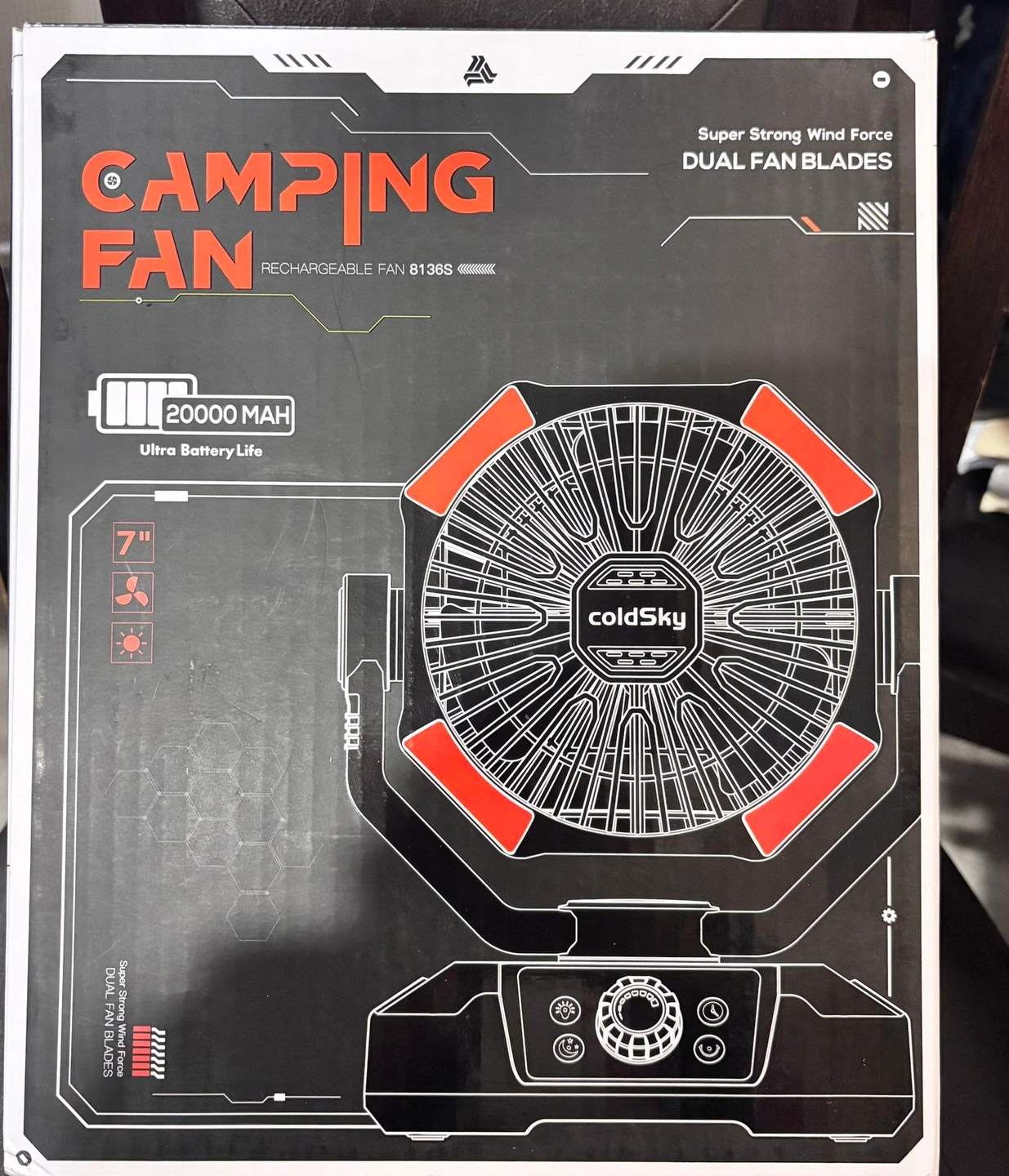 Portable Camping Fan 20,000mAh – Rechargeable, Remote, LED Light