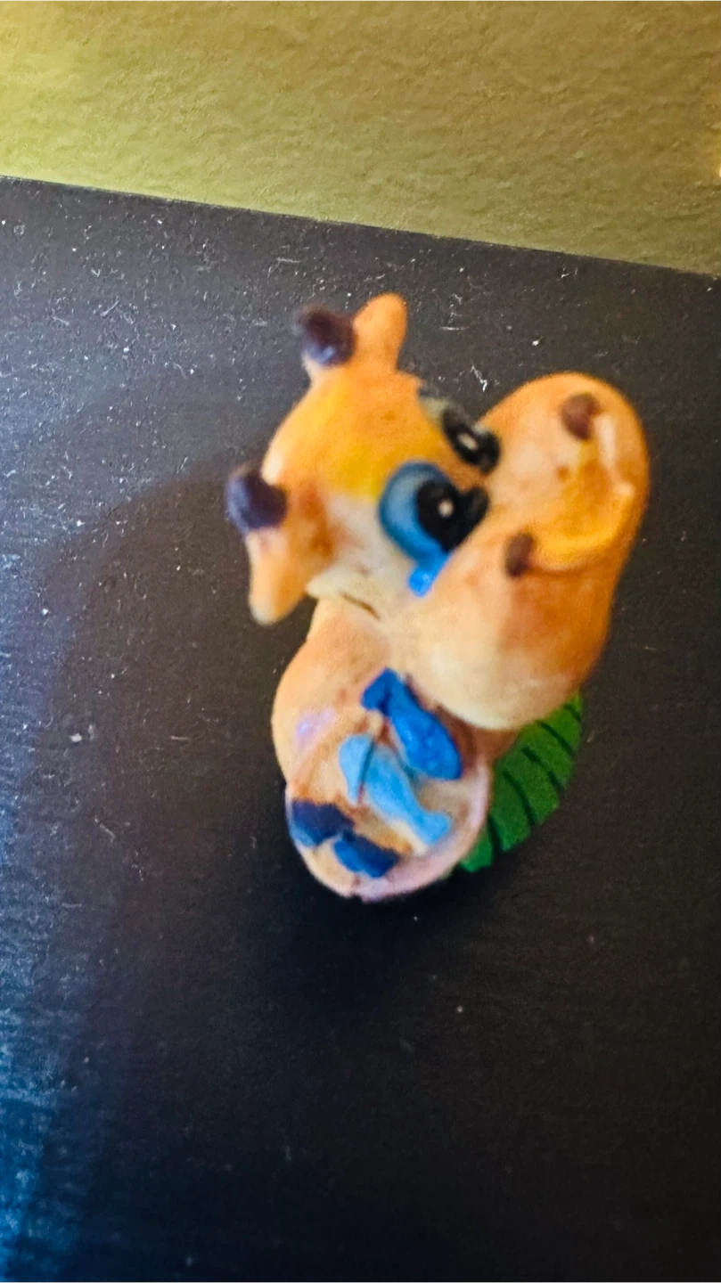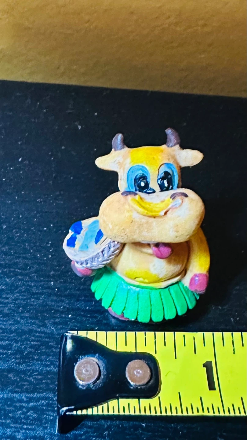 This is a handmade cow figurine, perfect for adding a touch of whimsy to your space! It features a cute design with vibrant colors and a unique, handcrafted feel
