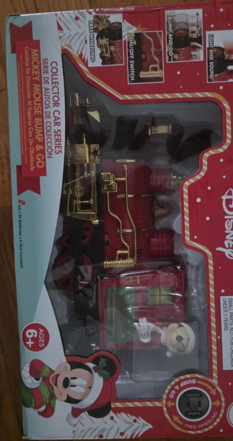Selling a Disney Collector Car Series Mickey Mouse Bump & Go train set! It's brand new, still in the box. Recommended for ages 6 and up. It features bump and go action and free wheeling.