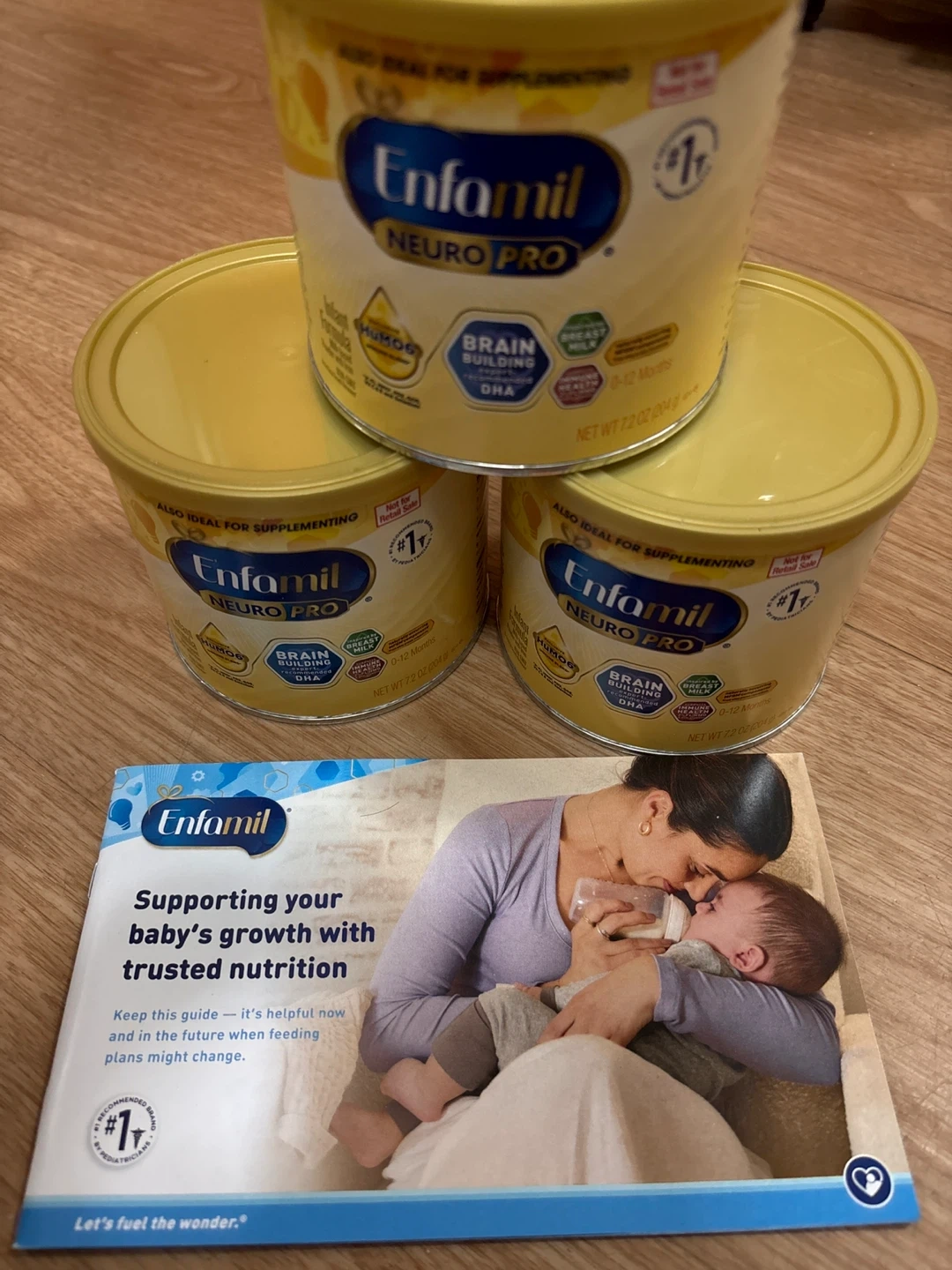 I have three cans of Enfamil NeuroPro infant formula available. The expiration date is January 2027. Also includes a supporting guide for baby's growth with trusted nutrition.