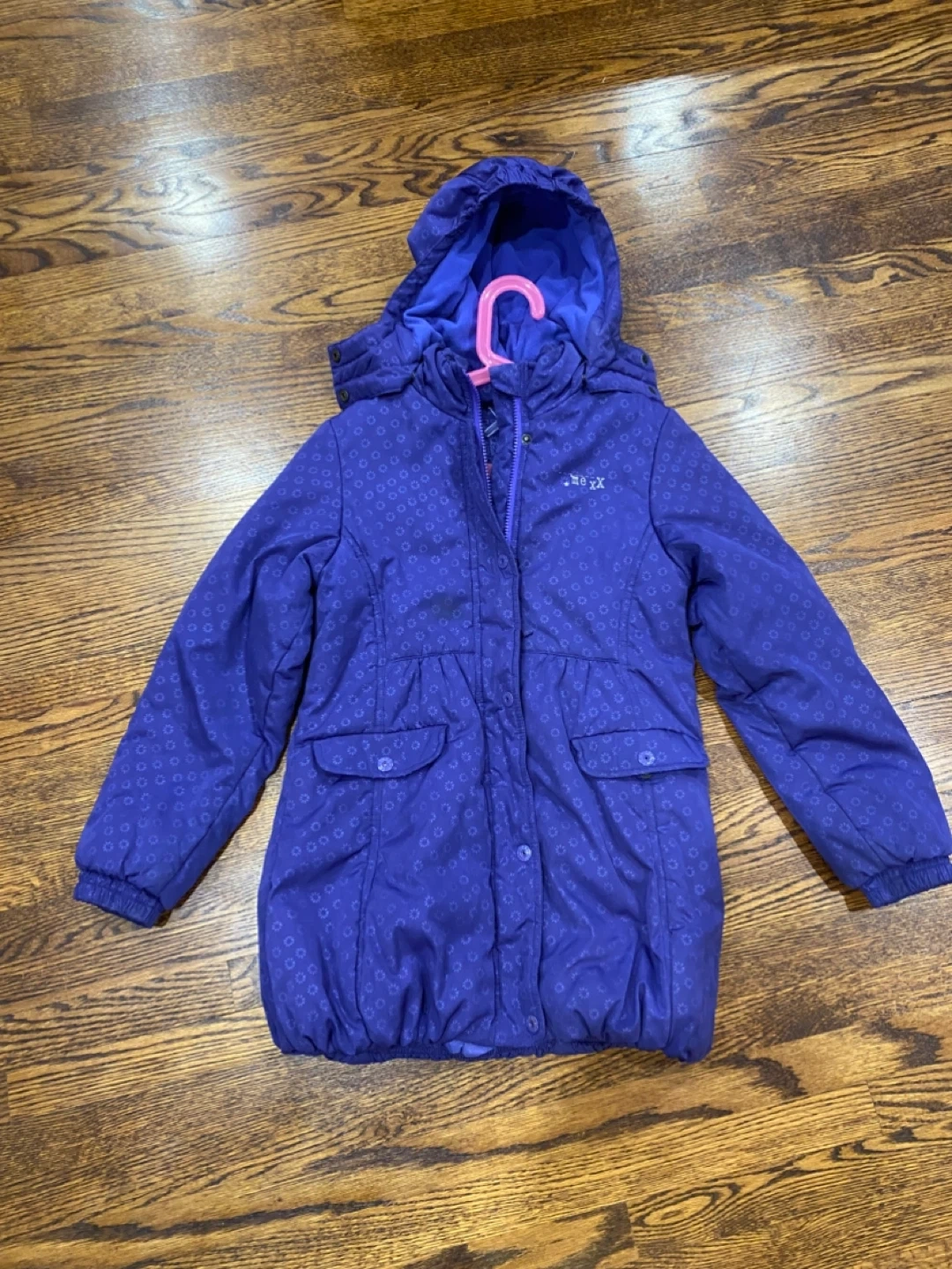 A lovely purple winter coat for girls from MEXX! It's in great condition and perfect for keeping your little one warm during the colder months. The size is 9-10 (CA). It fits like a medium.
