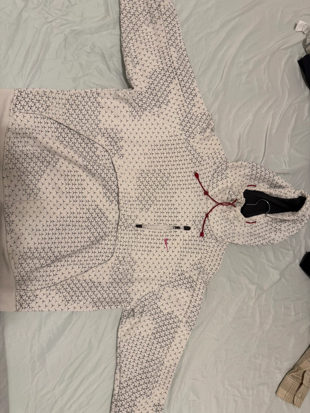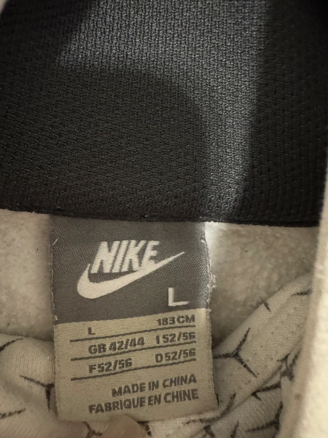 Selling a Nike hoodie in size L. It features a unique pattern and is in good condition. Perfect for staying cozy!