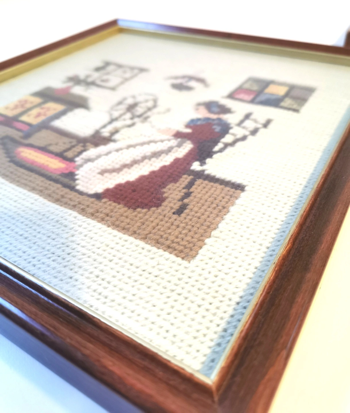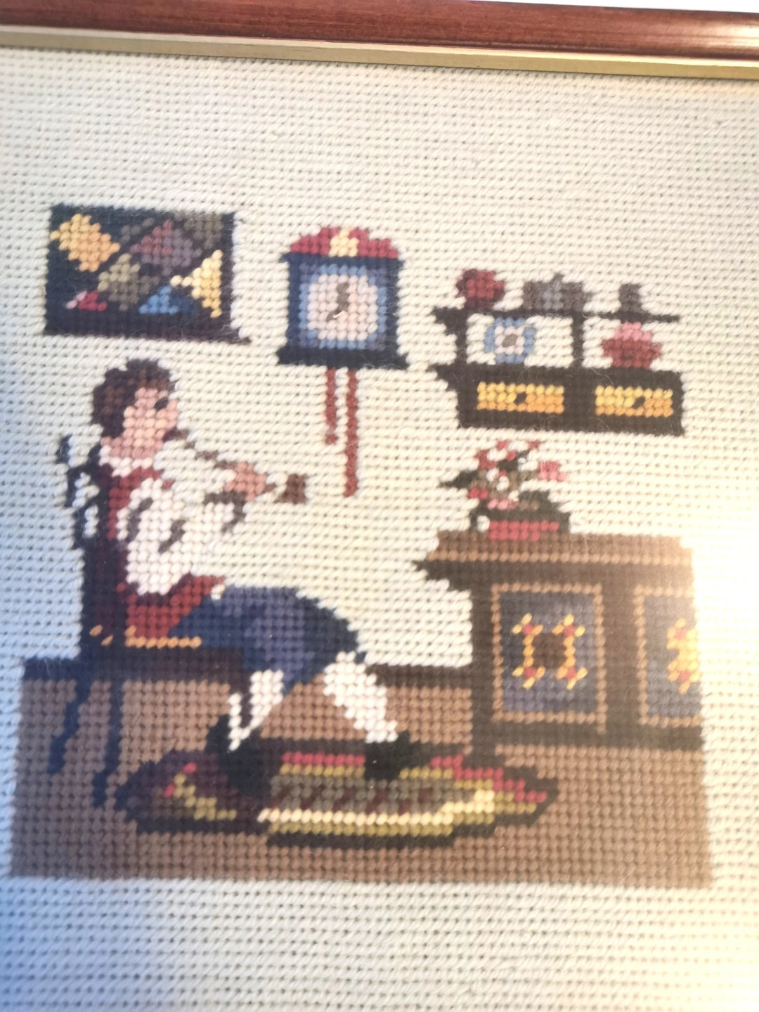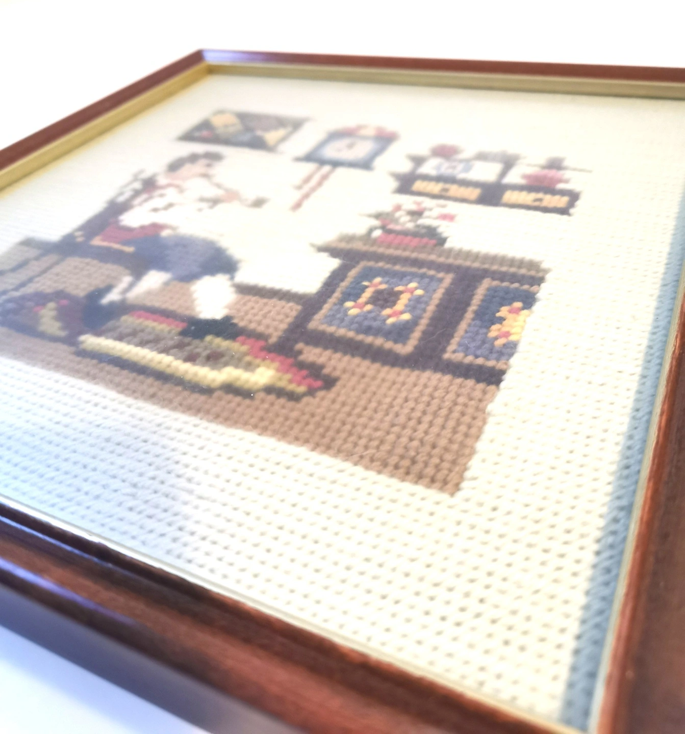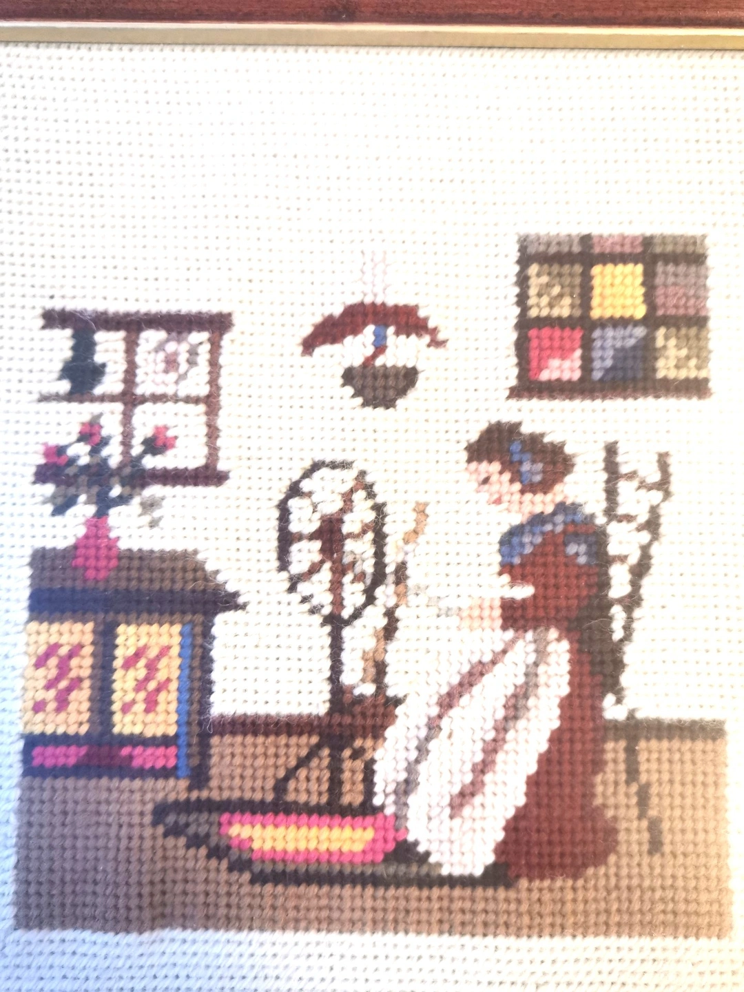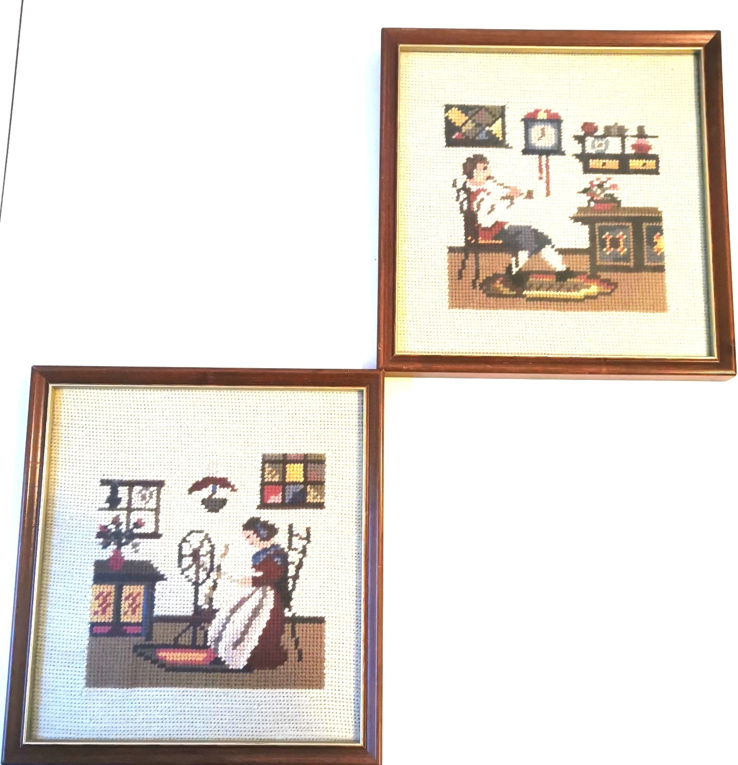 Condition: Good vintage condition. The needlework is vibrant and tight. Frames show minor age-appropriate wear (please review photos).