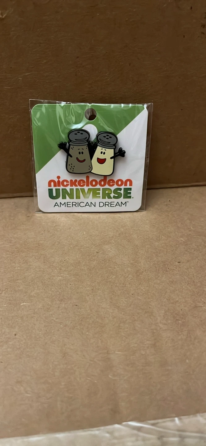 Selling a cute Nickelodeon Universe pin featuring Salt and Pepper shakers from American Dream! It's brand new in its original packaging. Perfect for any Nickelodeon fan!