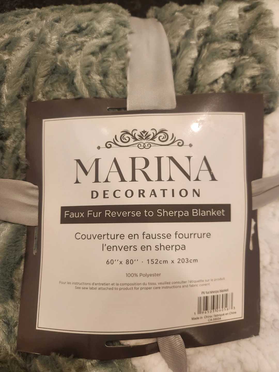 Snuggle up with this Marina Decoration faux fur blanket! It's super soft and cozy, with a sherpa reverse for extra warmth. It measures 60" x 80" and is made of 100% polyester. Two identical blankets are available, each for the listed price!