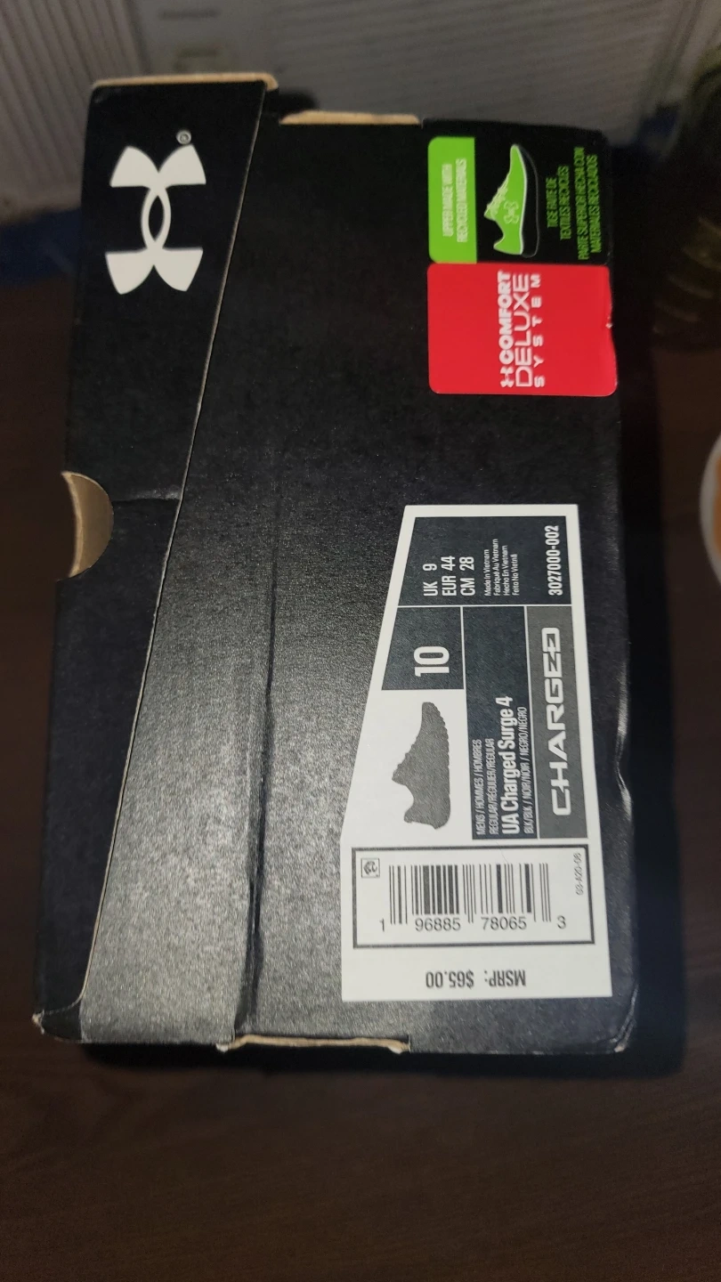 Selling a pair of Under Armour Charged Rogue 4 running shoes in size 10. They are in great condition and come with the original box. The MSRP on the box says $65.00. These shoes are perfect for running or everyday wear!