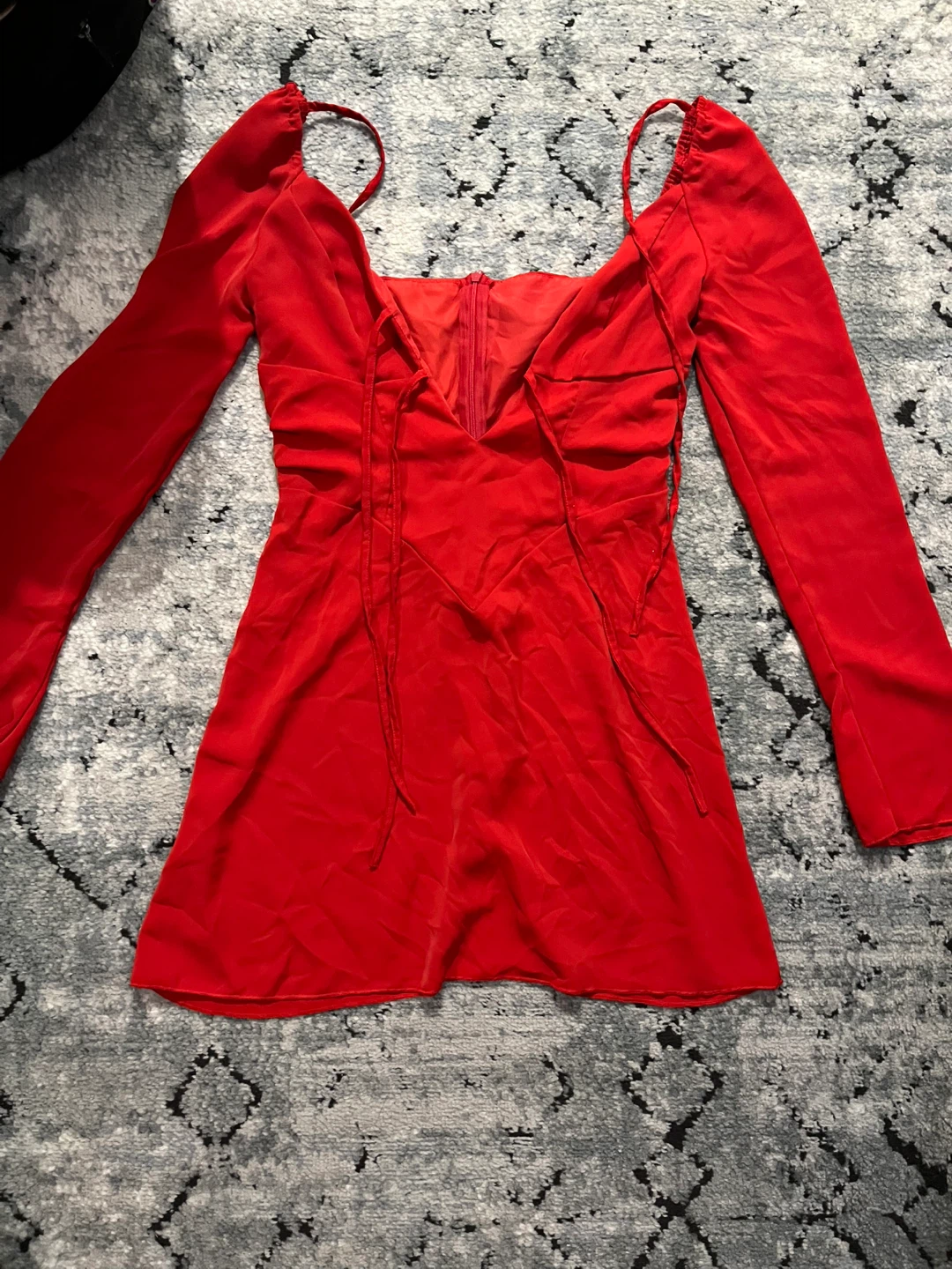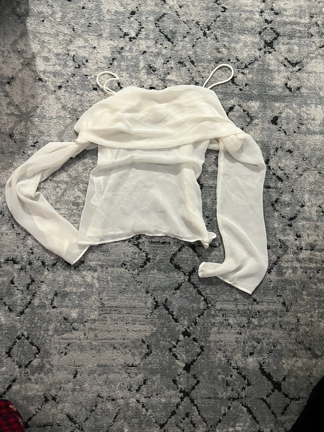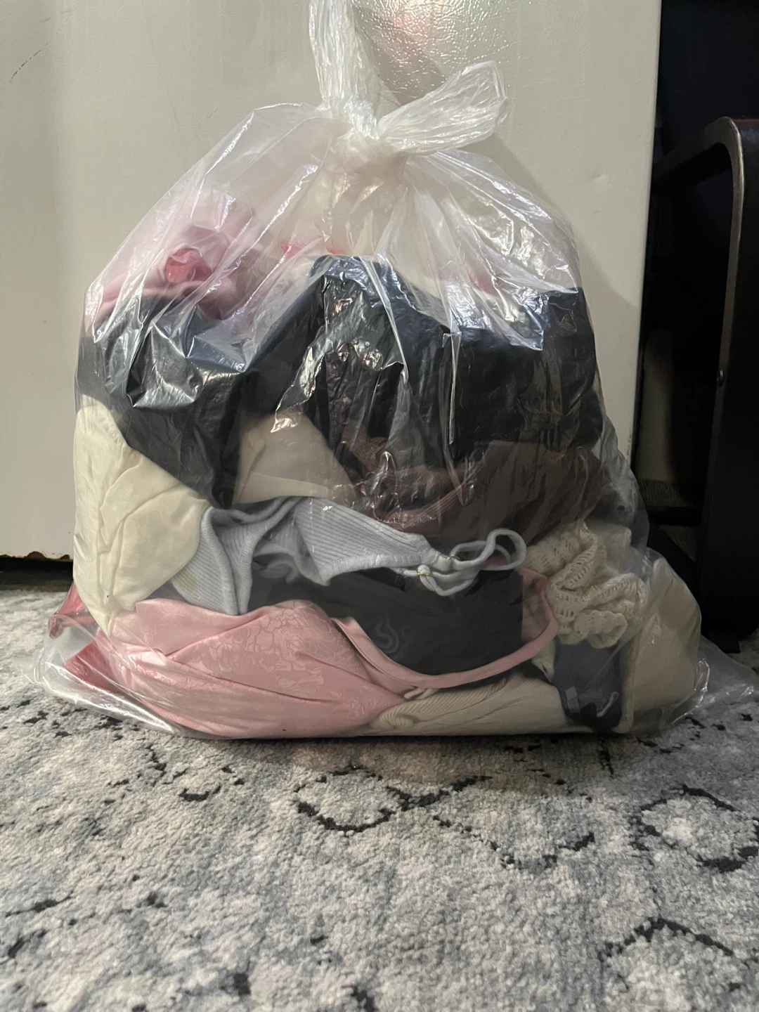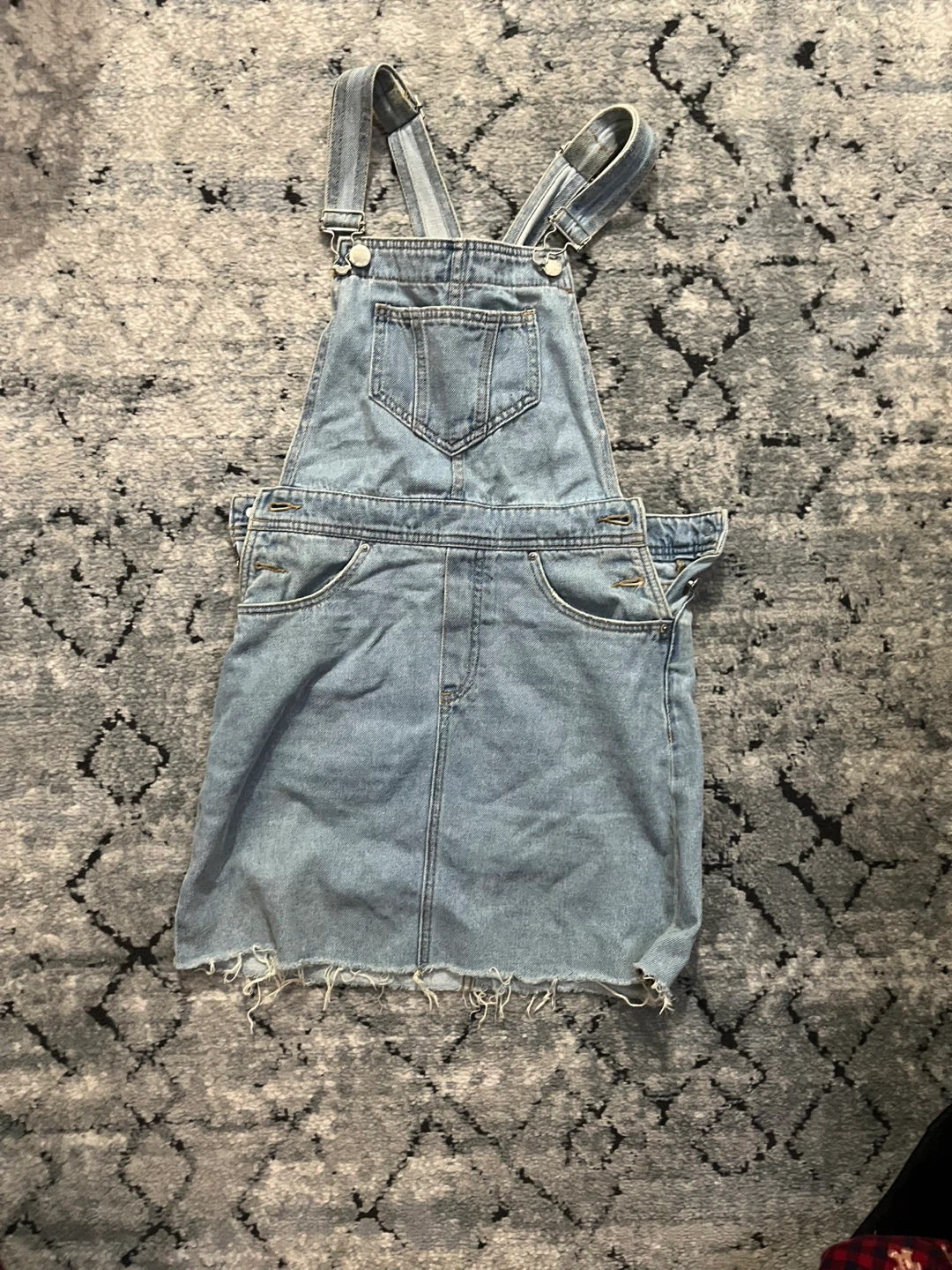 Selling a mixed lot of clothing! There's a variety of brands and styles included, such as a denim overall dress, a white top, a brown long-sleeved shirt, and a black skirt. Perfect for refreshing your wardrobe with some new pieces!