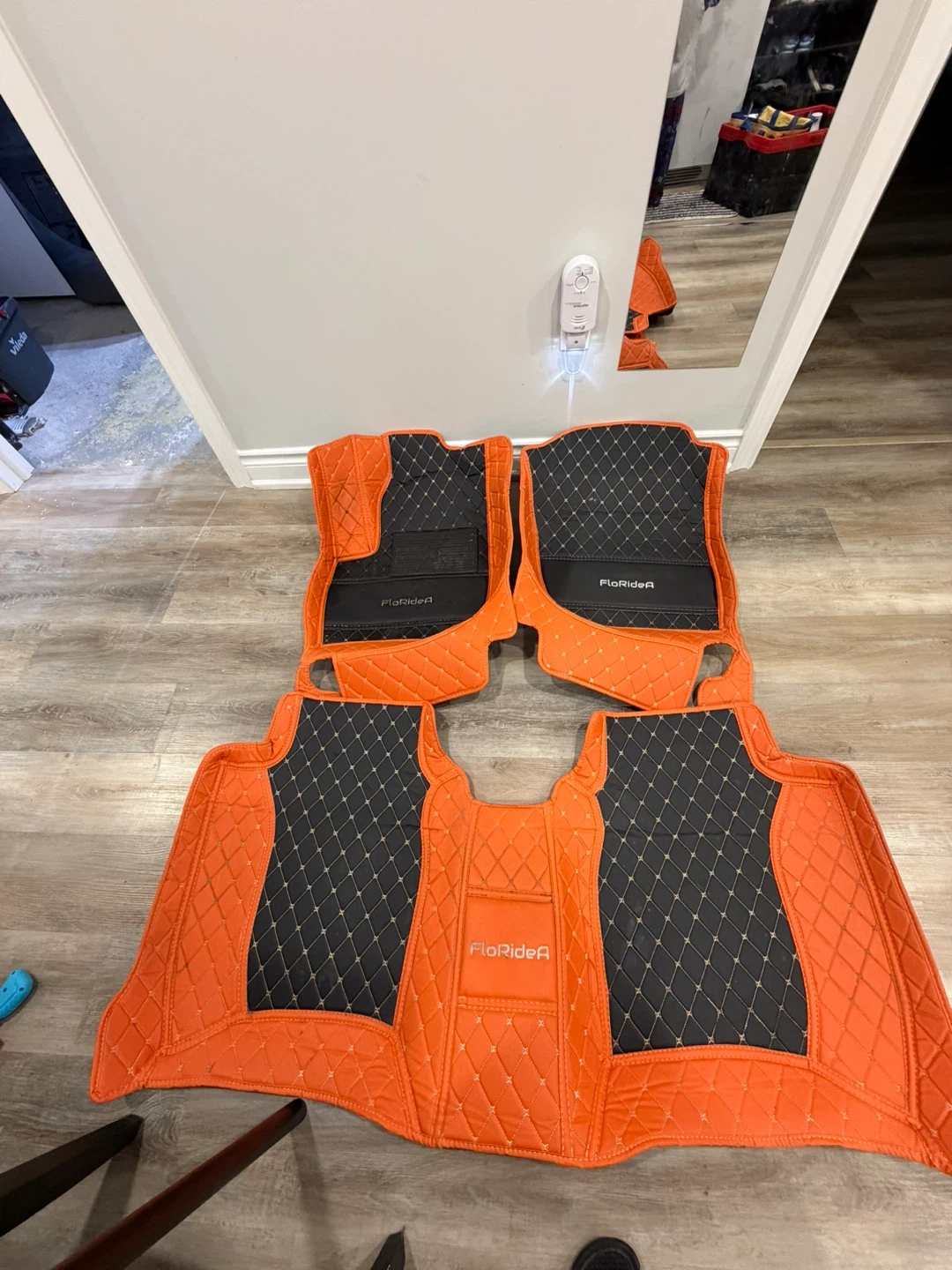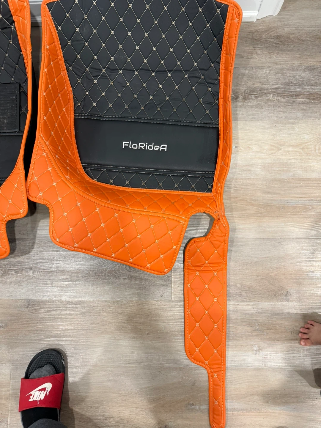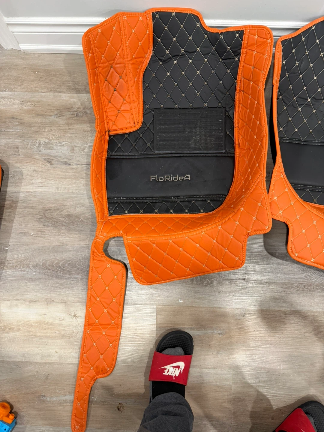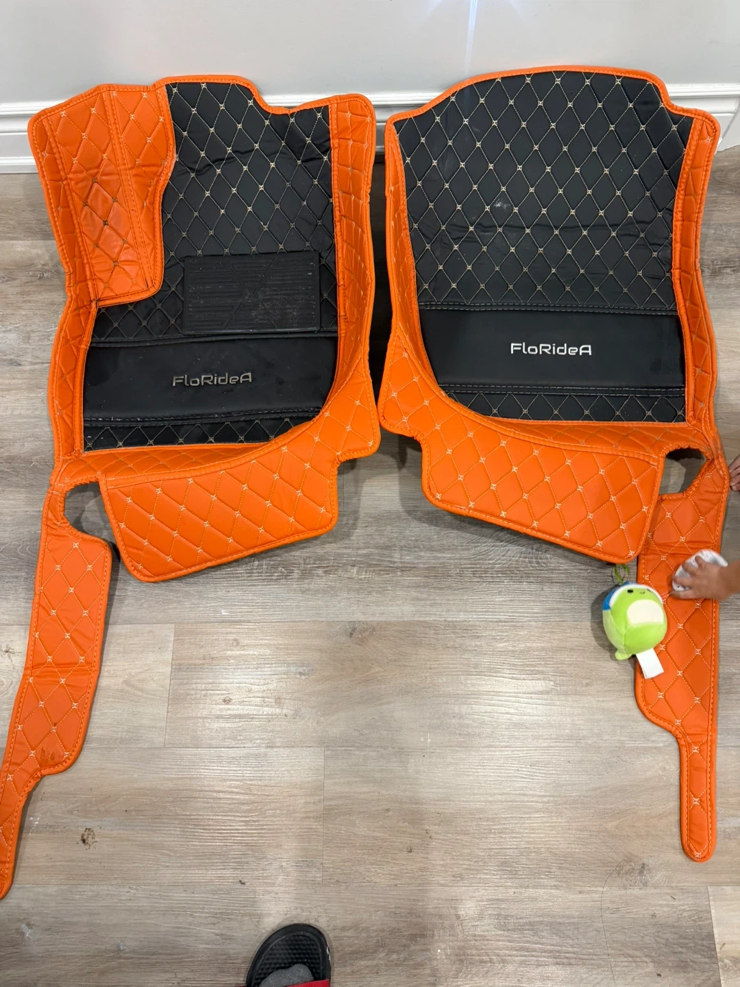 These mats have a quilted design and appear to be in good condition, ready to add a touch of style to your vehicle's interior