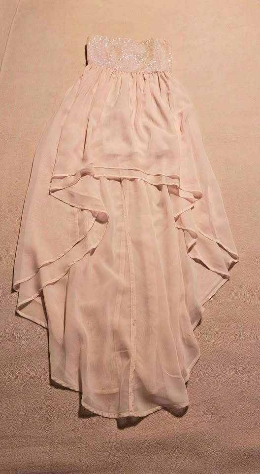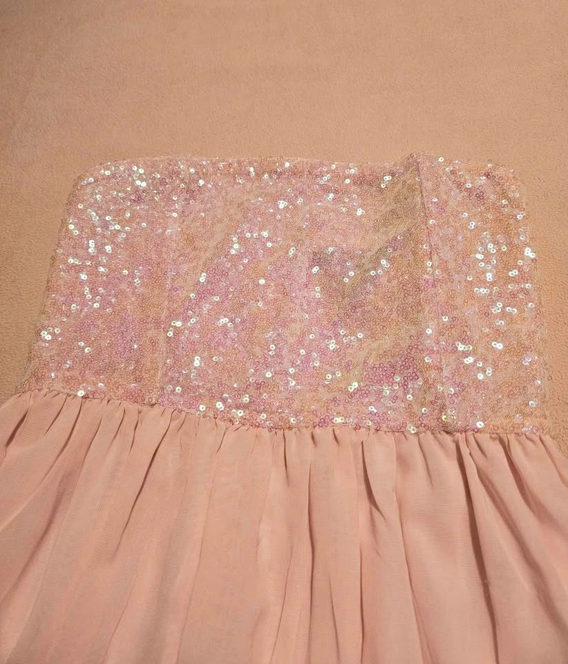 FREE! Gorgeous Forever 21 Size Small Pink Dress. Sequin top. Flowy shorter in front, long in back. Can attach your own straps if want to switch from strapless.