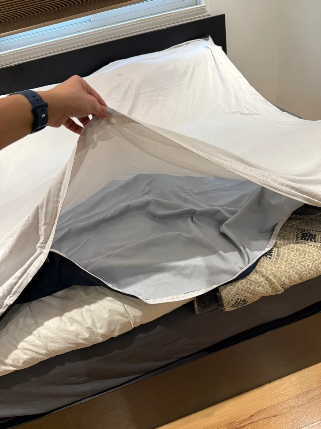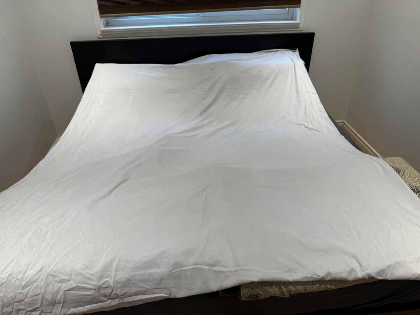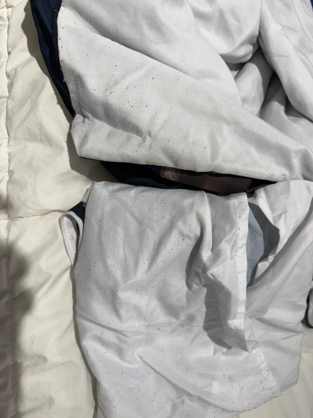 Size double. Well used but still in good shape. Please check the pictures — there are a few stains and some light pilling (small lint spots) from regular use.