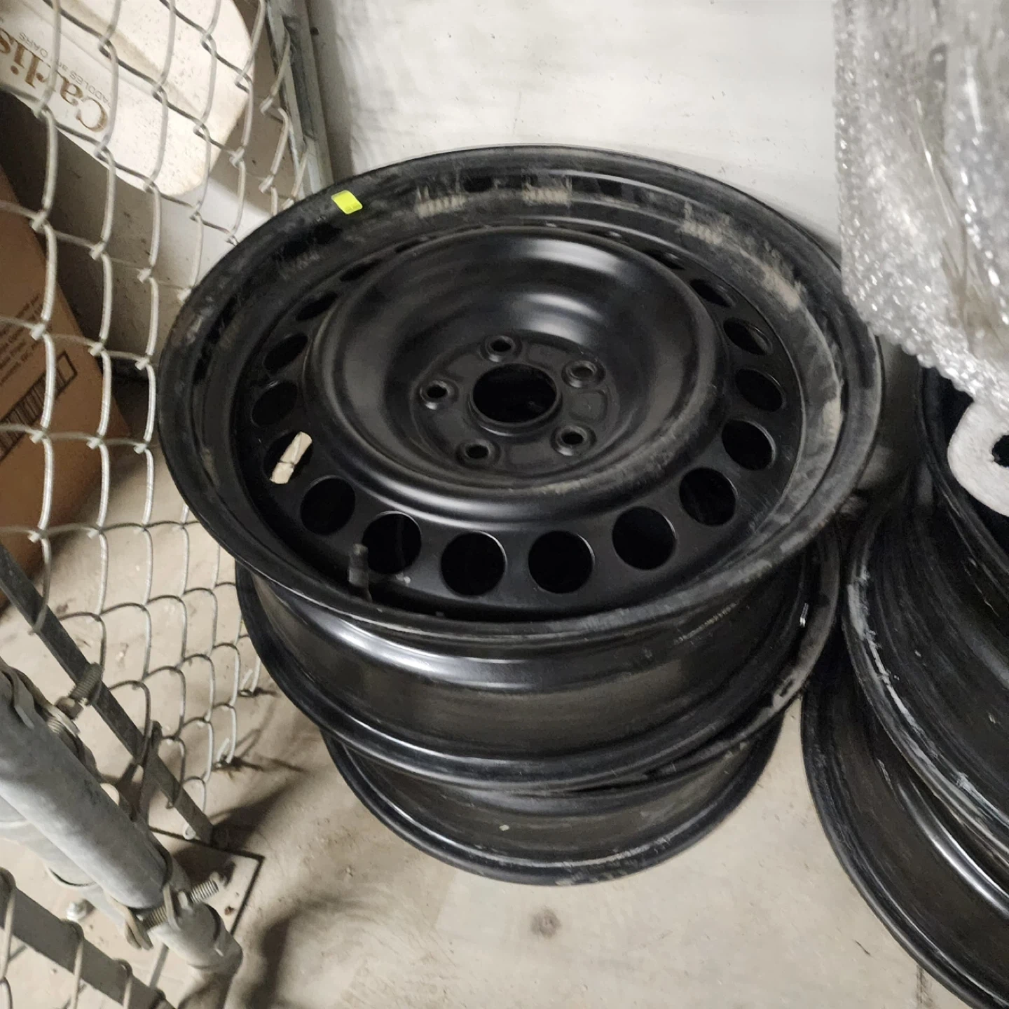 Selling a set of black steel wheel rims. They show some signs of use, but are in overall good condition and ready to be mounted on your vehicle. Perfect for winter tires or as a spare set!