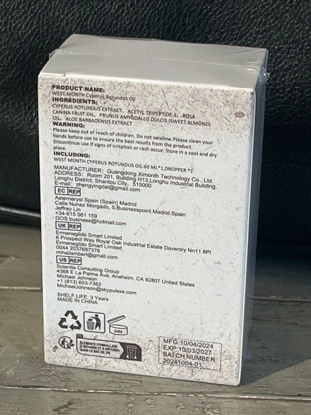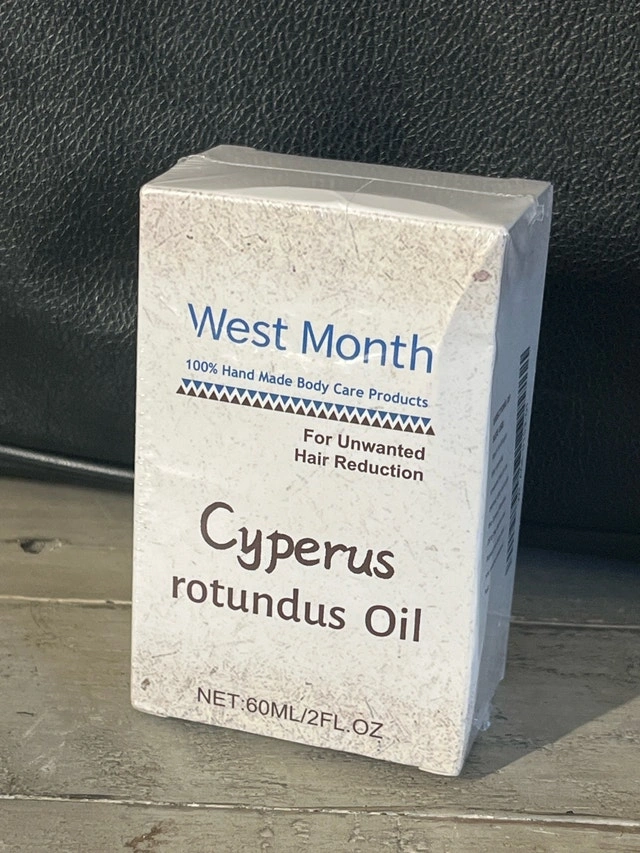 This is a brand new, sealed West Month Cyperus Rotundus Oil, 60 ml. It's designed for unwanted hair reduction and comes with a dropper for easy application.