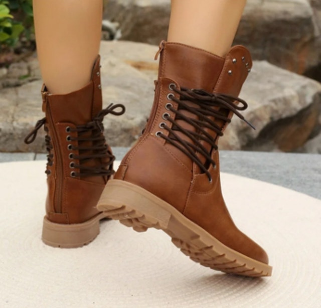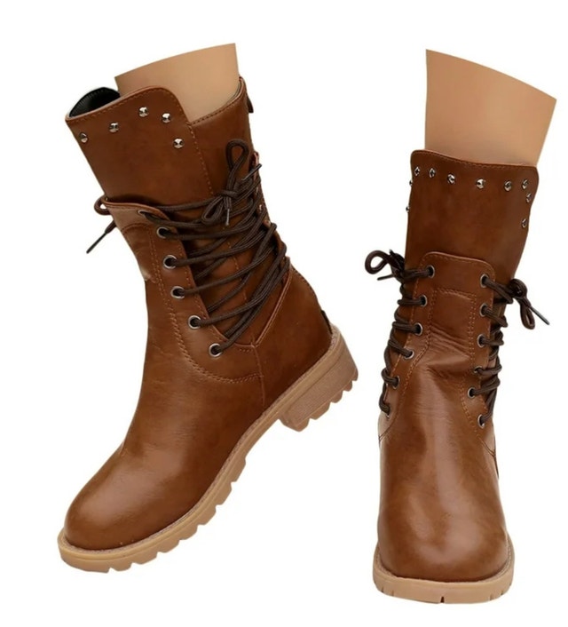 Step out in style with these eye-catching brown mid-calf boots, perfect for adding a touch of edgy flair to any outfit. They are so ready to elevate your wardrobe with a blend of comfort and unique design!