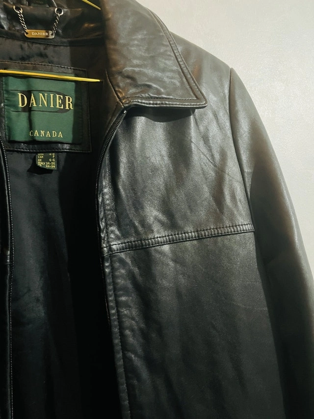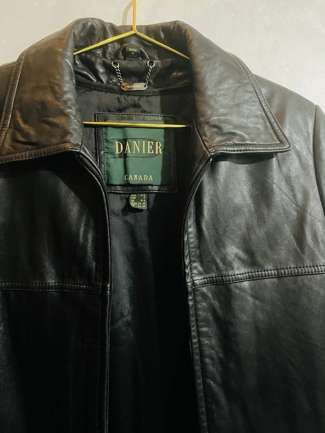 This is a lightly used stylish Danier leather jacket, perfect for adding a touch of class to any outfit. This jacket is in good condition and ready for a new home. It has a timeless design and is made from high-quality leather. Get ready to turn heads with this awesome jacket!