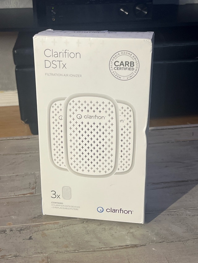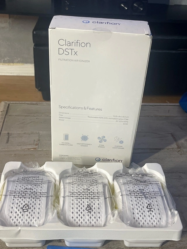 Keep your air clean with the Clarifion DSTx Filtration Air Ionizer. This new unit includes three devices with replaceable filters, ensuring long-lasting air purification. It's perfect for creating a healthier environment in your home or office.