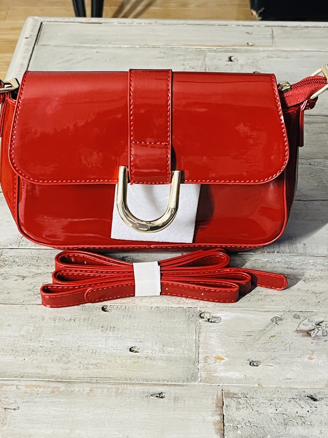 Add a pop of colour to any outfit with this stylish shoulder bag, featuring a chic gold-tone buckle detail. This compact bag is perfect for carrying your essentials while making a fashion statement. Whether you're heading to work, going on a brunch date, or out with friends, the red leather bag complements a variety of outfits and occasions. Its versatility makes it a staple accessory for any wardrobe. The zip closure not only adds a modern touch , it also keeps your belongings safe. This eye-catching bag is ready to turn heads. Pickup is in Brampton near Sheridan College