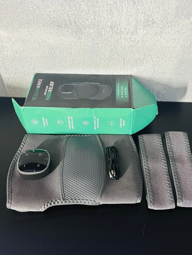 I am selling a Rejuvaknee Advanced Knee Relief system, which provides targeted heating and massage to soothe sore knees. This device is in brand new condition and comes with all original accessories, including straps and charging cable. It features an LCD touch panel for easy control and offers 5 heating levels and 3 massage modes for customized relief. It's also dual-use for shoulder application, providing versatility for different needs. If you're seeing this ad, it means the Rejuvankee is still available. pick up is available in Brampton near Sheridan College.