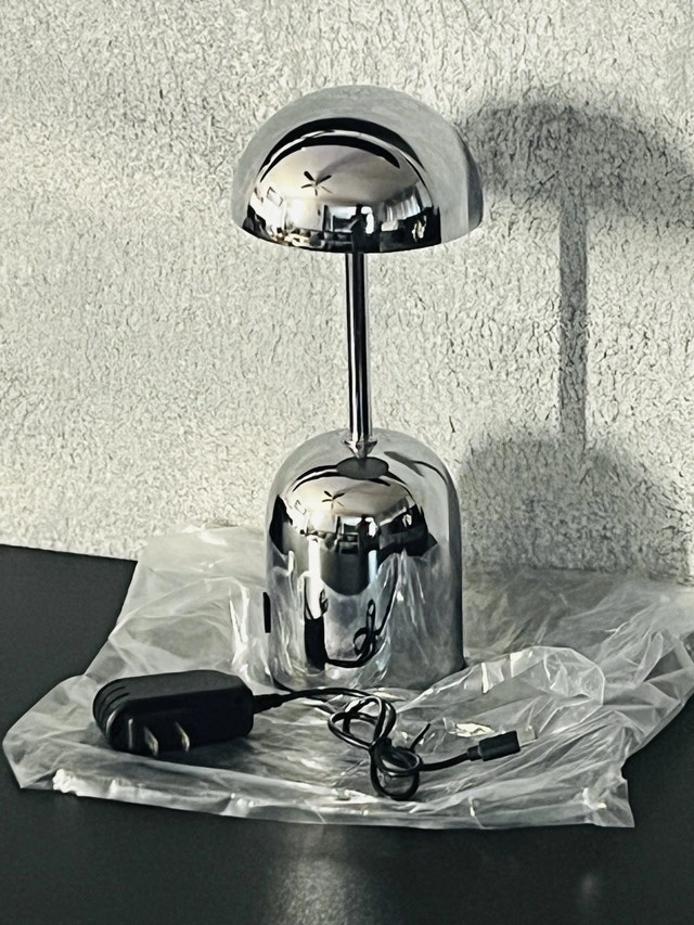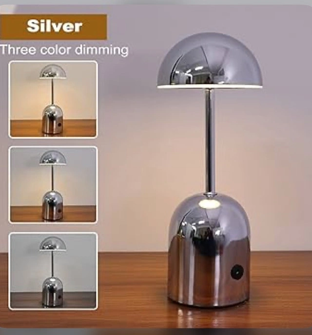 Illuminate your space with this brand new, three-colour dimming silver lead rechargeable table lamp, perfect for adding a touch of modern elegance to any room. This lamp features easy-to-use touch controls and a sleek, reflective finish. Here are some more details: