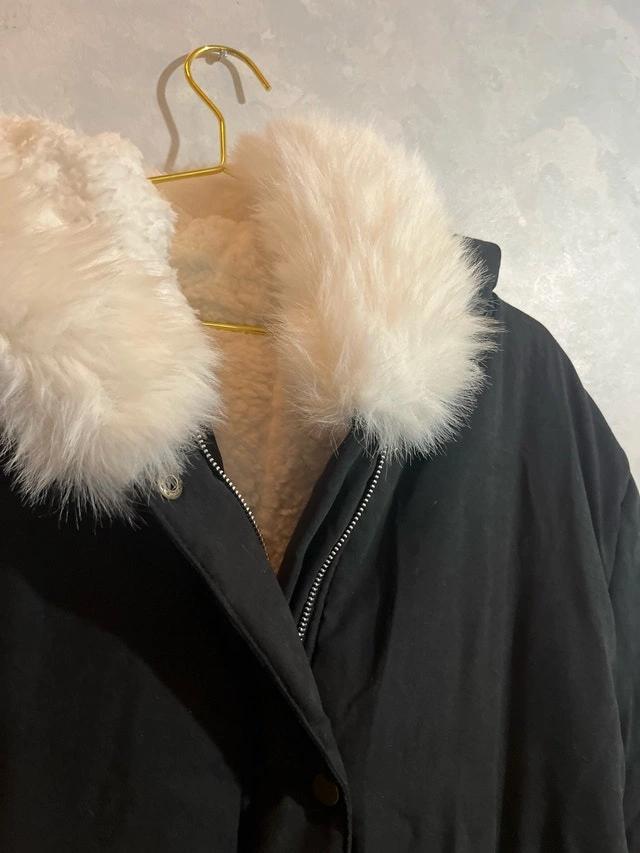 Stay warm and stylish with this brand new black winter coat, featuring a cozy faux fur hood and a flattering cinched waist, perfect for braving the Canadian weather. Additional Specifications: - Size: 2XL - Colour: Black - Material: Blend - Faux fur hood - Cinched waist Pickup is in Brampton near Sheridan College.