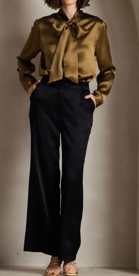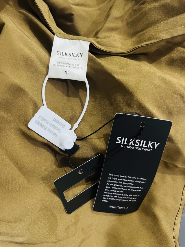 This Silksilky blouse is made from 95% mulberry silk. It is brand new with tags and is an XL. This luxurious top features a beautiful tie-neck design. It is a gorgeous gold colour. Retail price over $140. Pick up is in Brampton near Sheridan College.