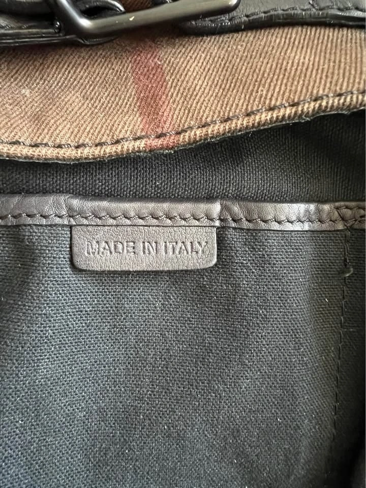 Authentic Burberry large handbag. Brown and black check pattern. Braided leather handle. Black leather trim. Dust bag included. Spacious interior. Origin Italy.