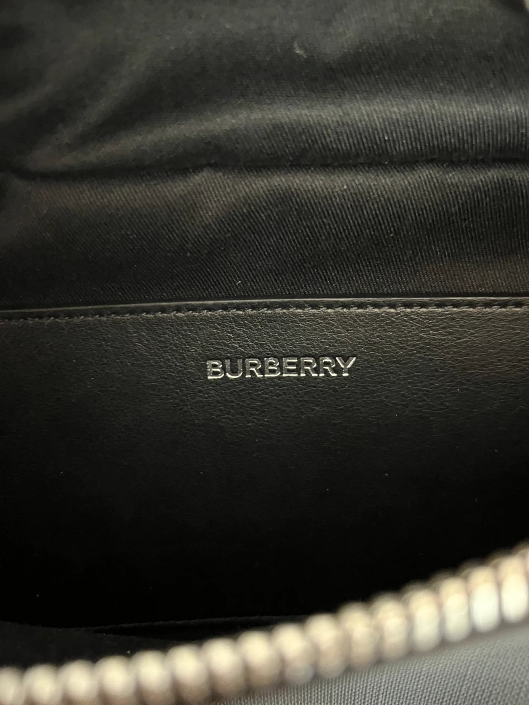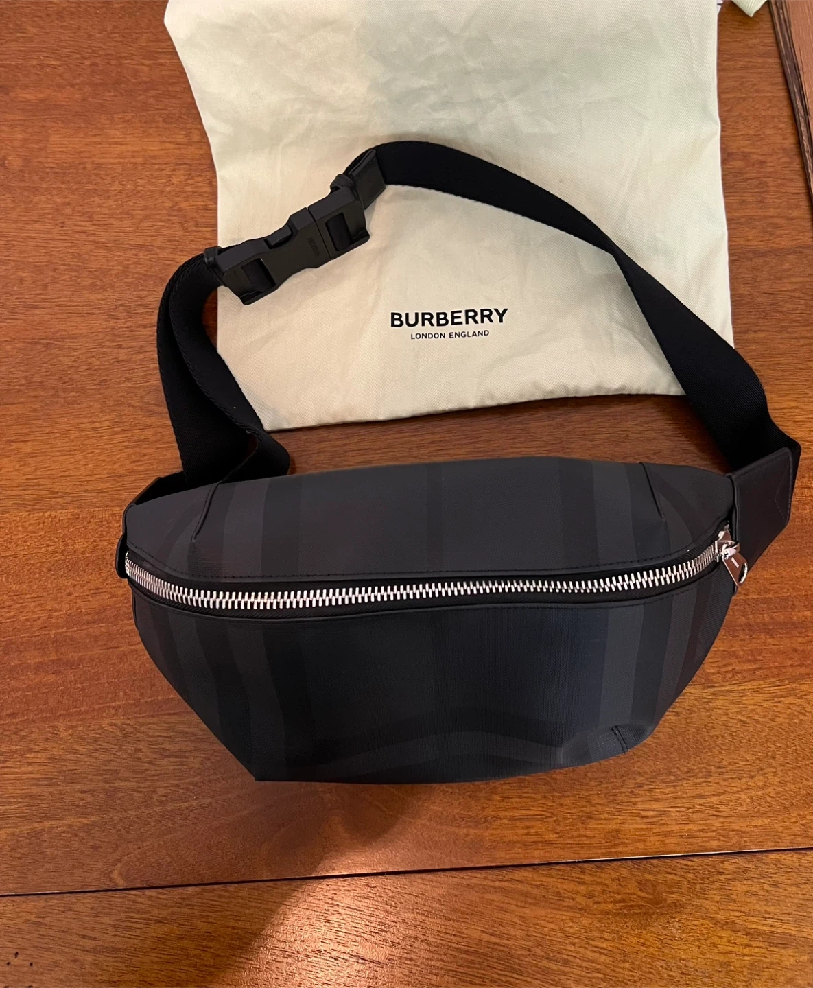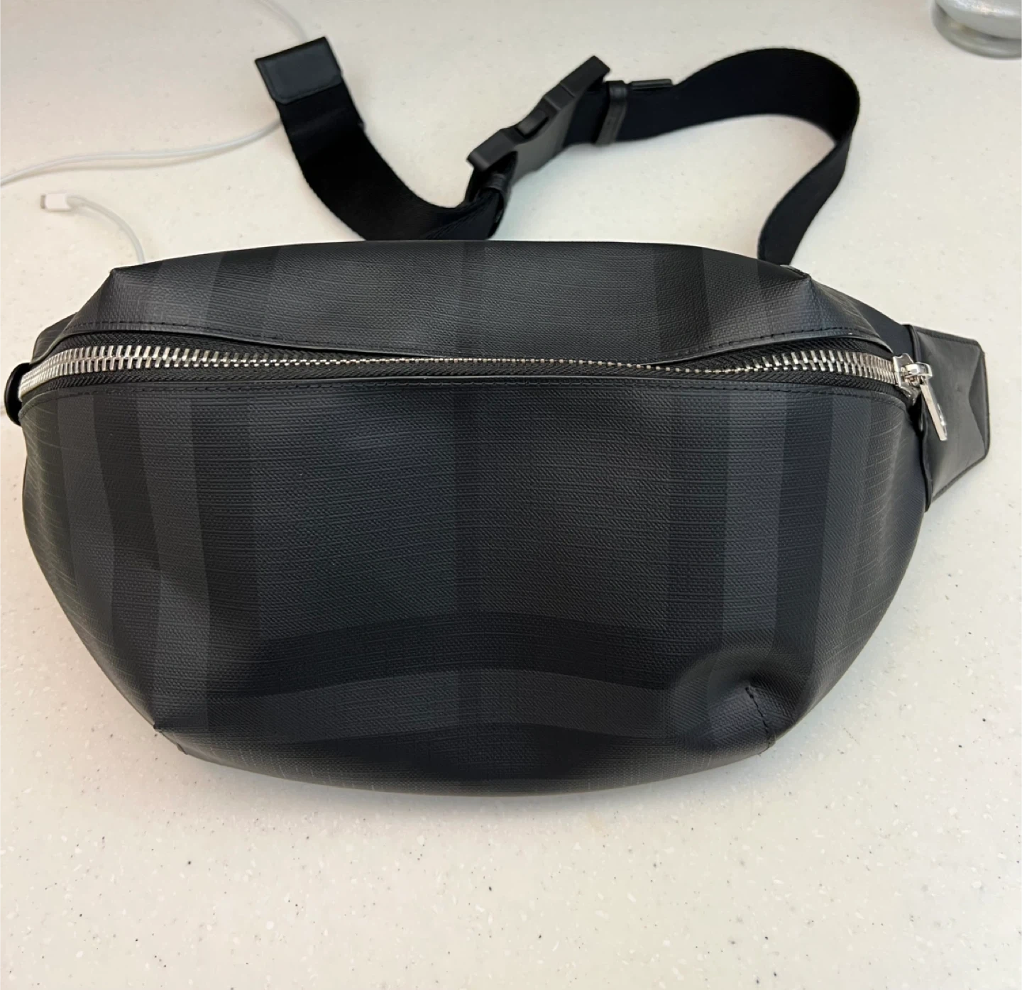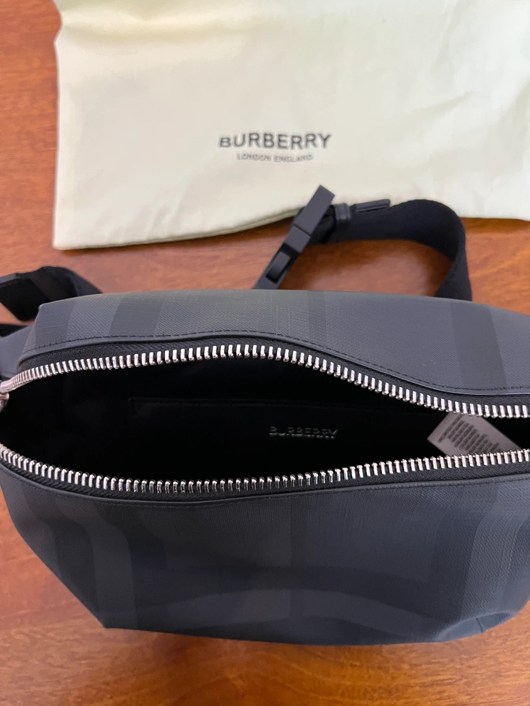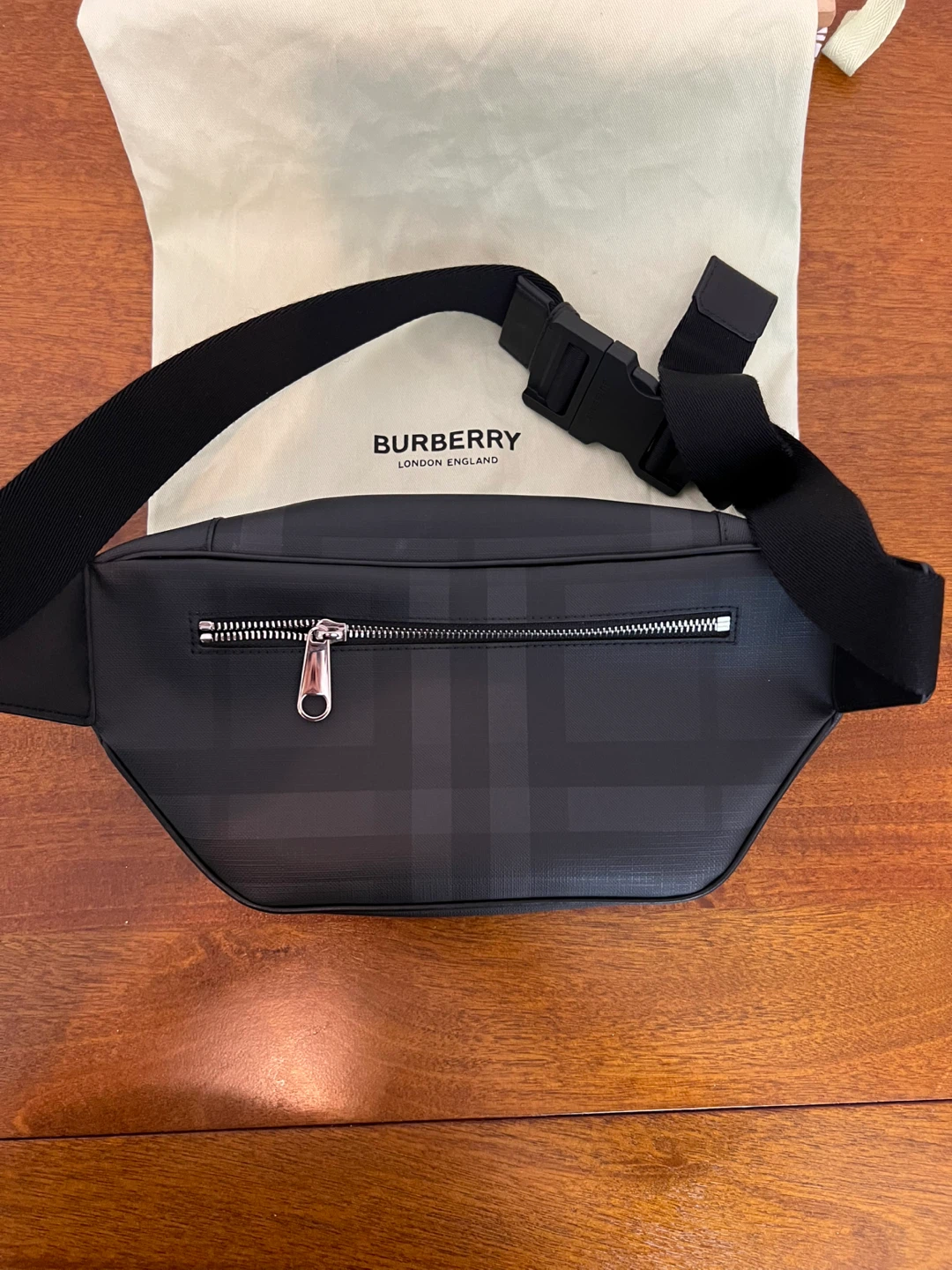 * Design: This item features the signature London Check pattern in dark charcoal/black on a polyurethane/canvas material.