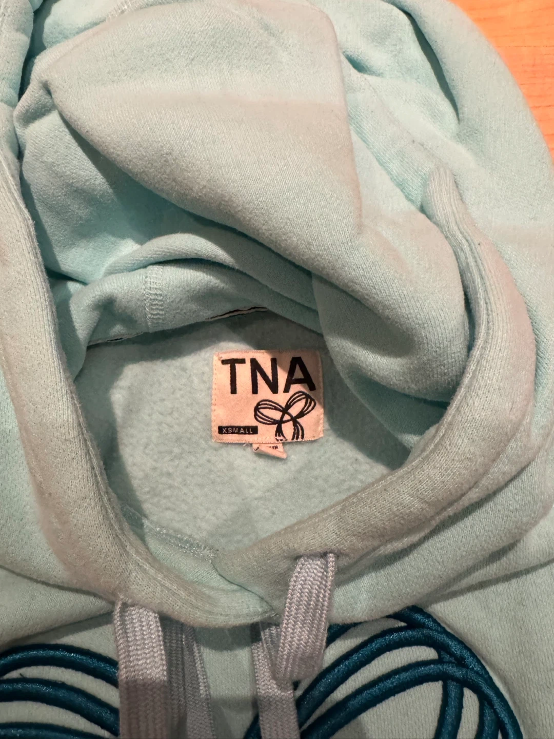 Selling a TNA hoodie in size XSmall. It's a lovely light blue colour and in great condition! Perfect for layering or just lounging around
