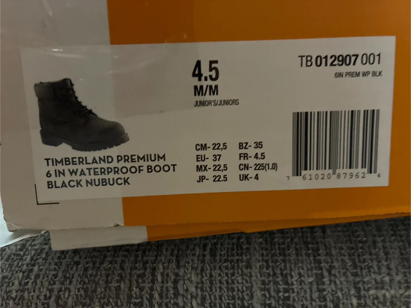 Selling a pair of brand new in the box Timberland Premium 6-inch waterproof boots in black nubuck. These are a men’s size 4.5 Women’s size 6