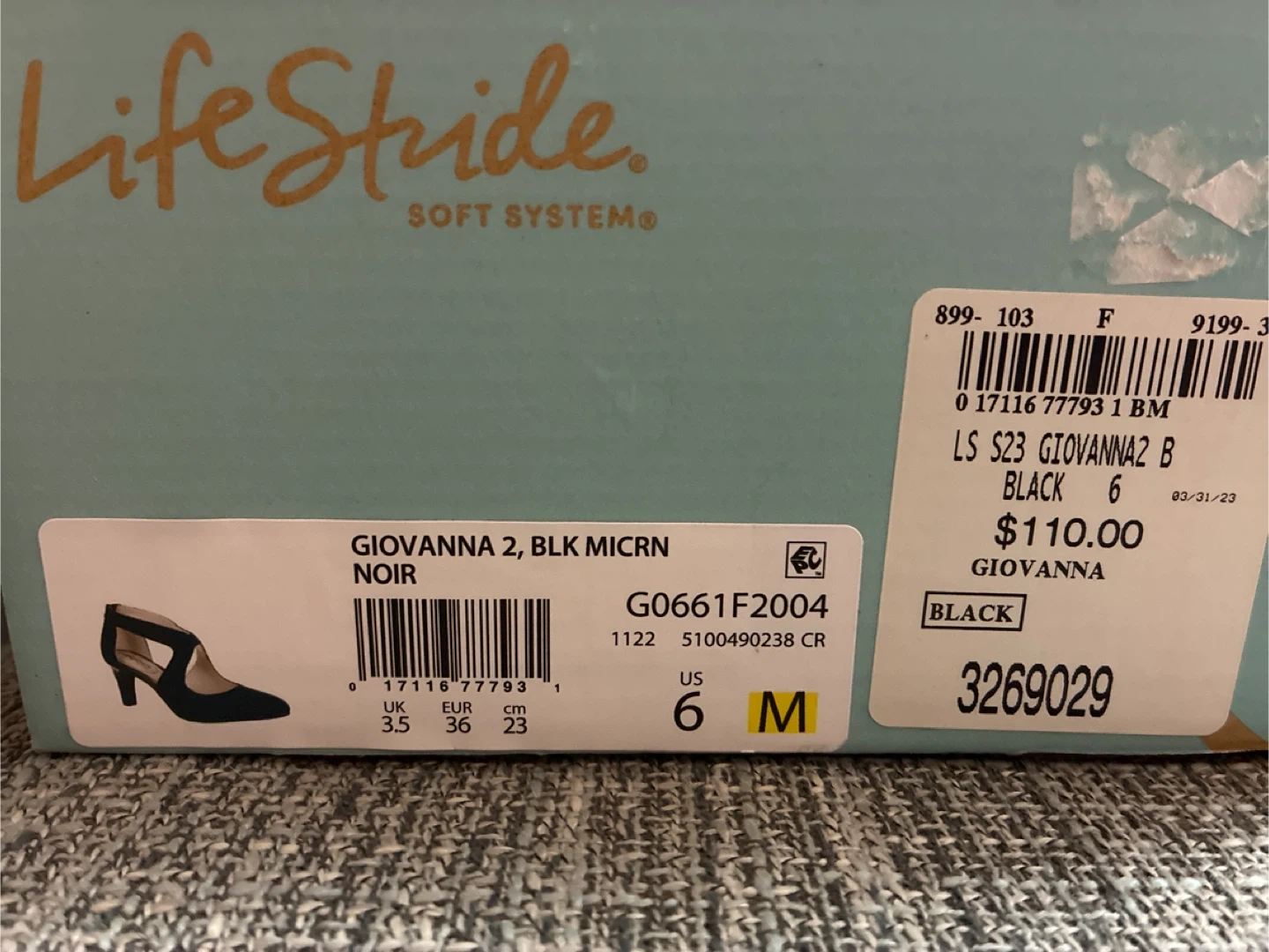 Brand new in the box LifeStride Giovanna 2 heels in black, size 6M. These stylish and comfortable she has the original sticker price of $110