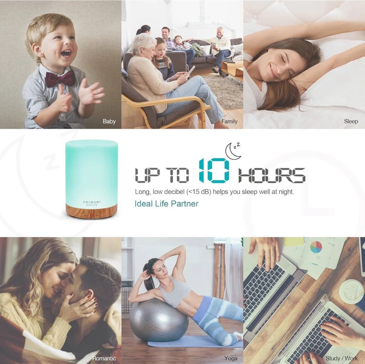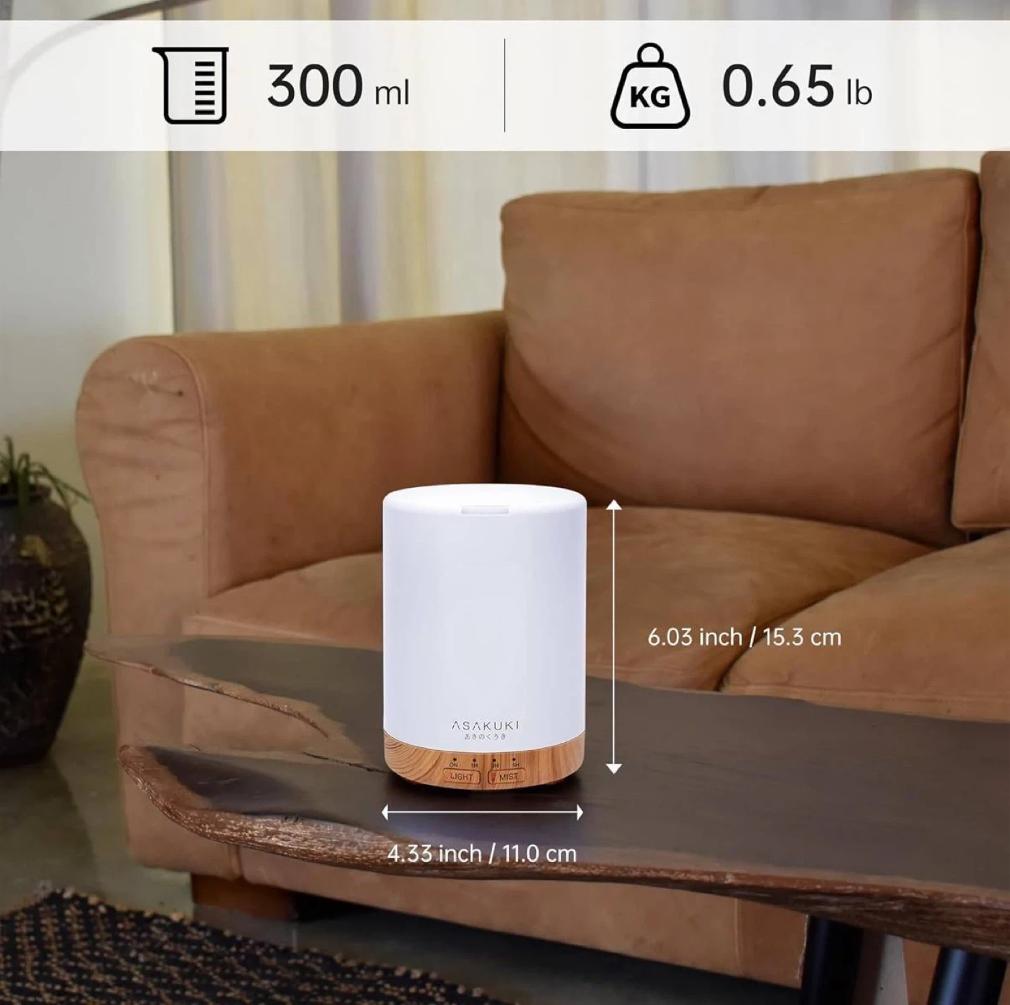 • ASAKUKI Essential Oil Diffuser (multiple timer settings: 60 / 180 / 360 min; Light & Mist options)