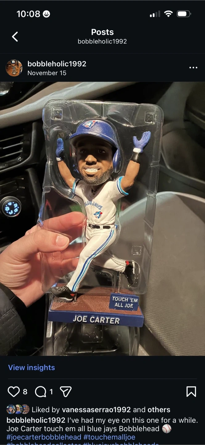 Selling a Joe Carter 'Touch 'Em All Joe' bobblehead in its original packaging! A great piece for any Blue Jays fan or bobblehead collector