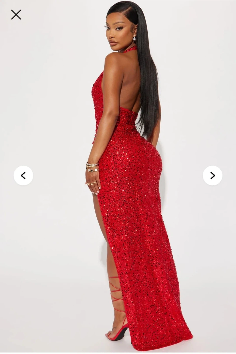 Selling two beautiful red dresses and matching heels from Fashion Nova! The dresses are stunning red colour and the heels complement them perfectly. They're in great condition (never worn) and ready for a night out! First dress is large size and other dress with the slit is medium size. The dresses are $38.99 each and the heels is $28.99. Heels is size 8.
