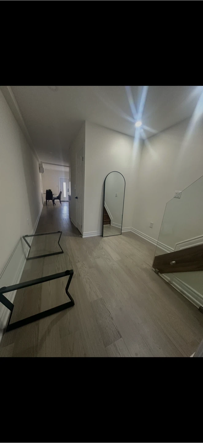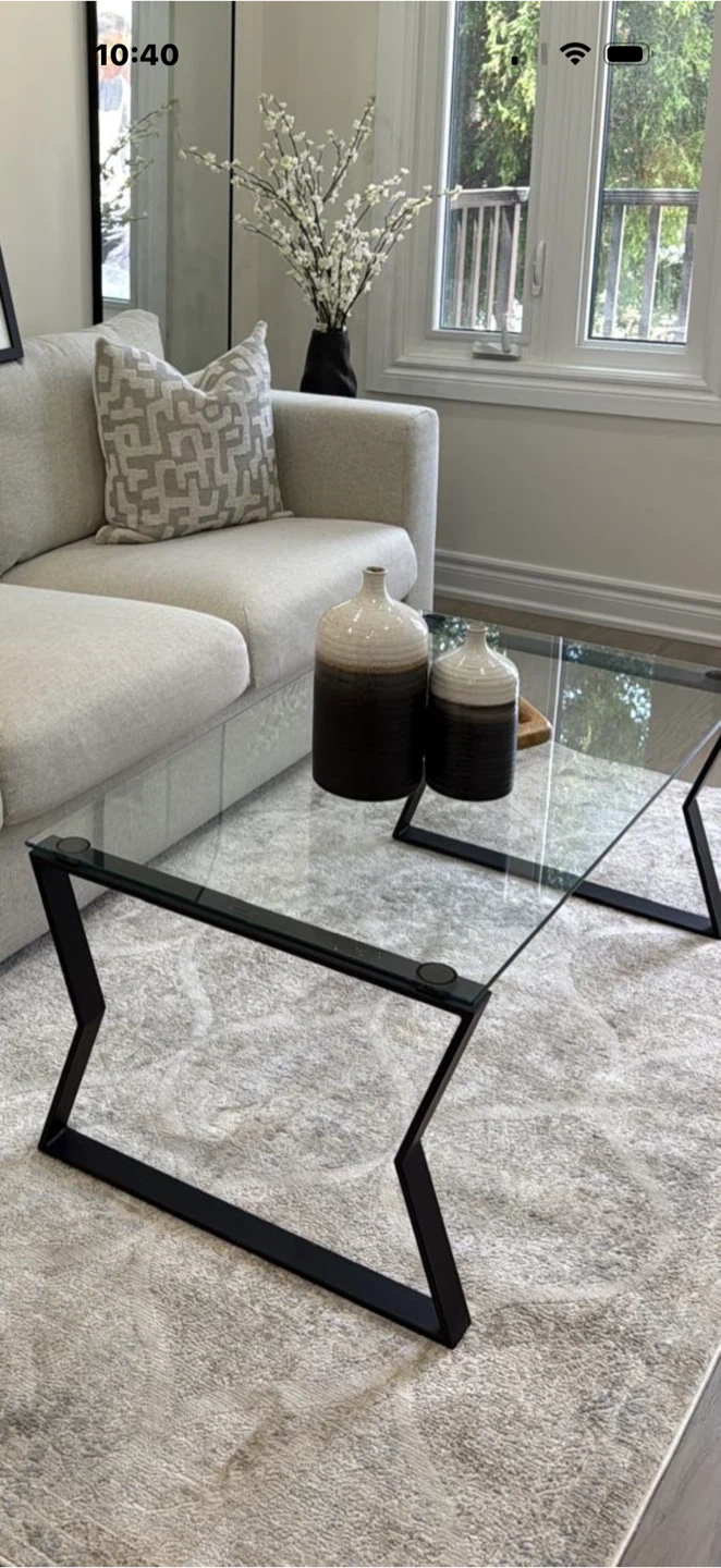 Selling a stylish glass coffee table with a unique black metal base! It would look great in any living room or lounge area. The glass top is in good condition . It is used just for staging .