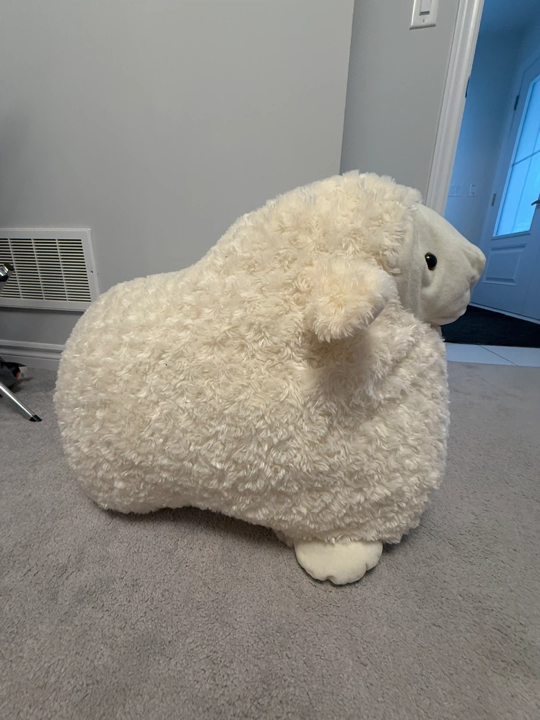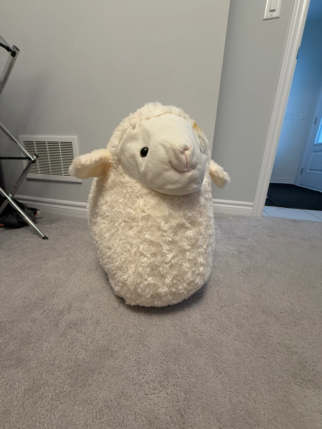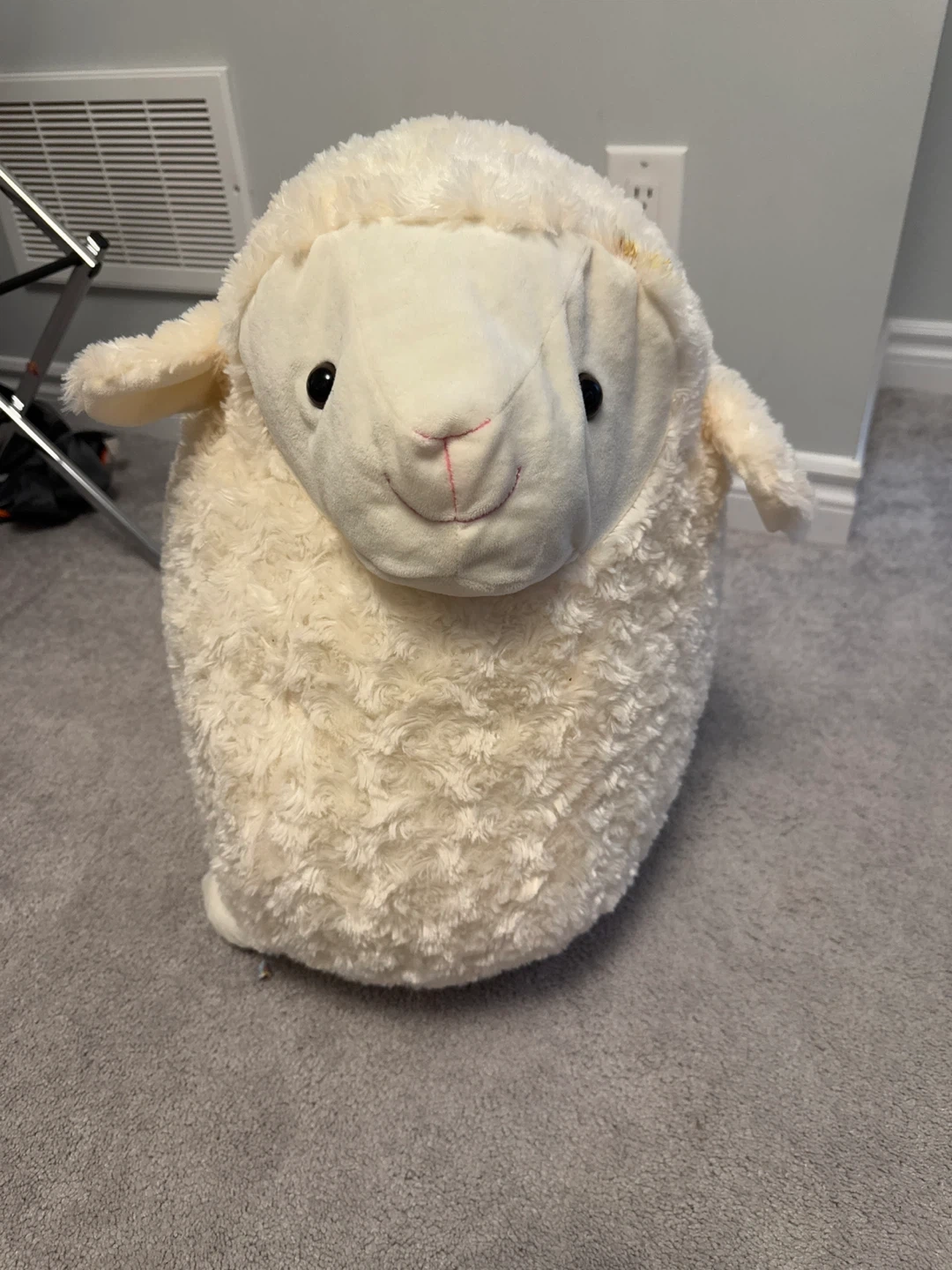 Selling a Pottery Barn Kids sheep beanbag chair! It's in great condition and would be a cozy addition to any kid's room or play area. This adorable beanbag is perfect for lounging, reading, or just relaxing. It's soft, plush, and ready to bring joy to its new home