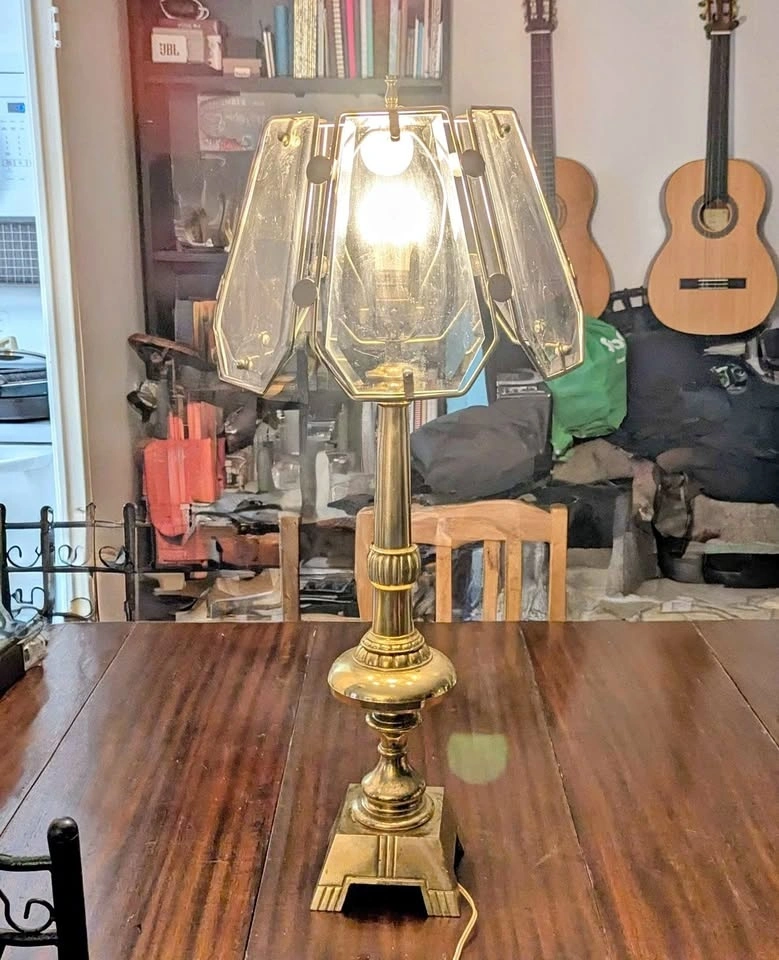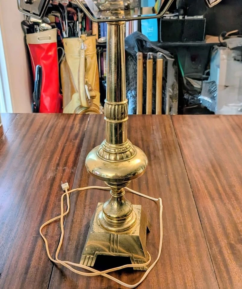Vintage Brass Tone Lamp with Glass Panel Shade