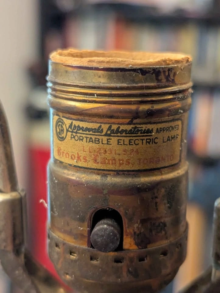 A vintage electric lamp socket manufactured by Brooks Lamps in Toronto, Canada.