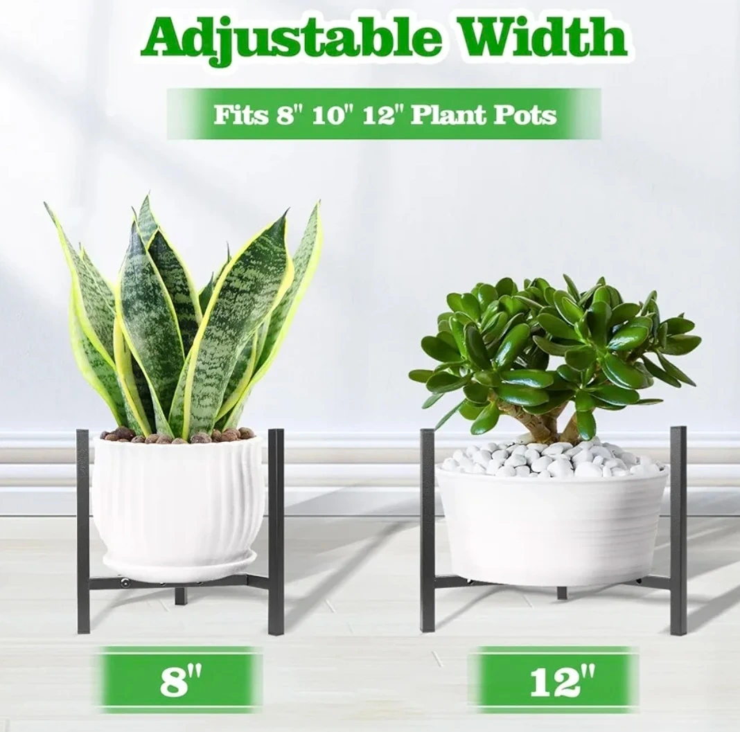 Looking to add a little something to your plants? This adjustable metal plant stand could be just the thing! It's black and can be flipped to switch heights. The dimensions are approximately 9.96" wide and can be set to 2.76" or 5.80" tall.